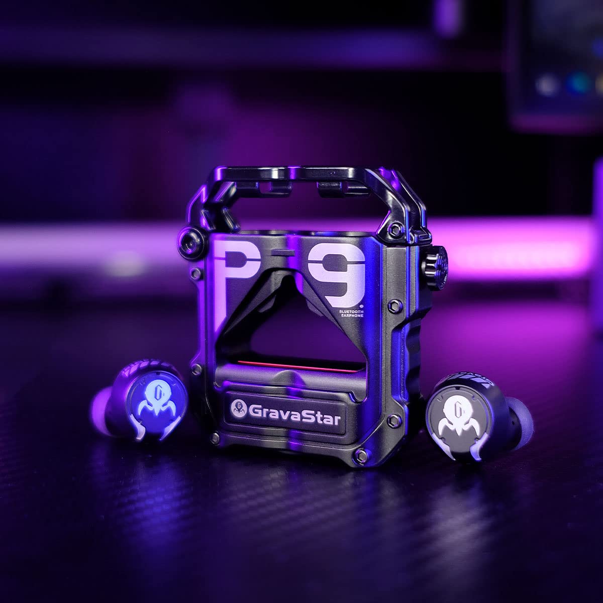 - 【SCI-FI INSPIRED DESIGN】 Unlike any wireless earbuds you have ever seen,Gravastar earbuds are designed for fashion and music lovers.The charging case is made from a zinc alloy material that keeps it safe from scratches and bumps. It also features a physical button and a laser-engraved touch panel that gives it a vibe that's out of this world.