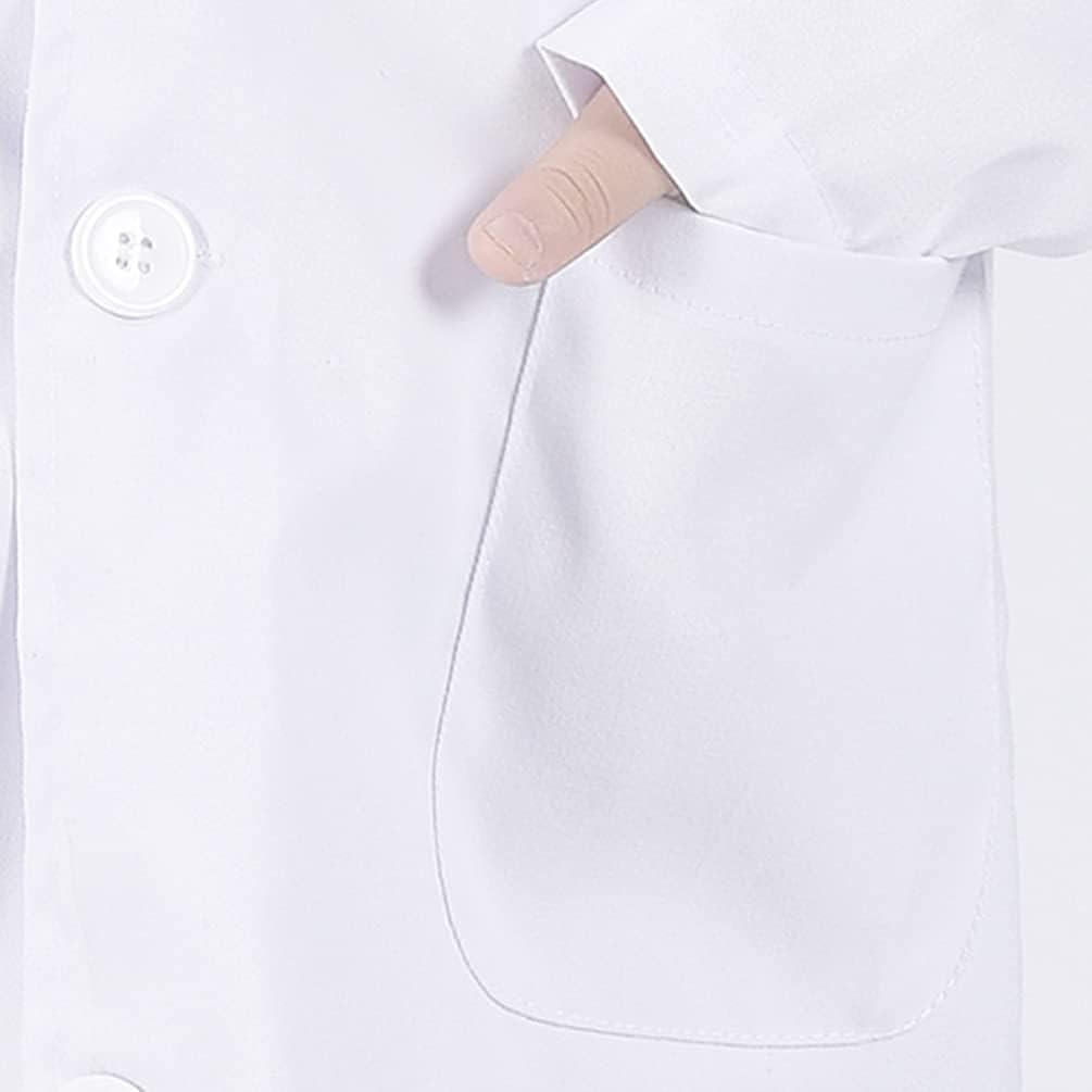 - Soft Material For Kids: Our kids scrubs for girls are made of soft and breathable materials. This Kids doctor costume features a V-neck with three front pockets, paired with elastic-waist pants. We offer 4 sizes of this kids lab coat and kids scrub. We have marked the height and weight range suitable for what size. Please choose the appropriate size refer to the picture. Pretend playing games with these real doctor kits will make children more engaged and happy all day long