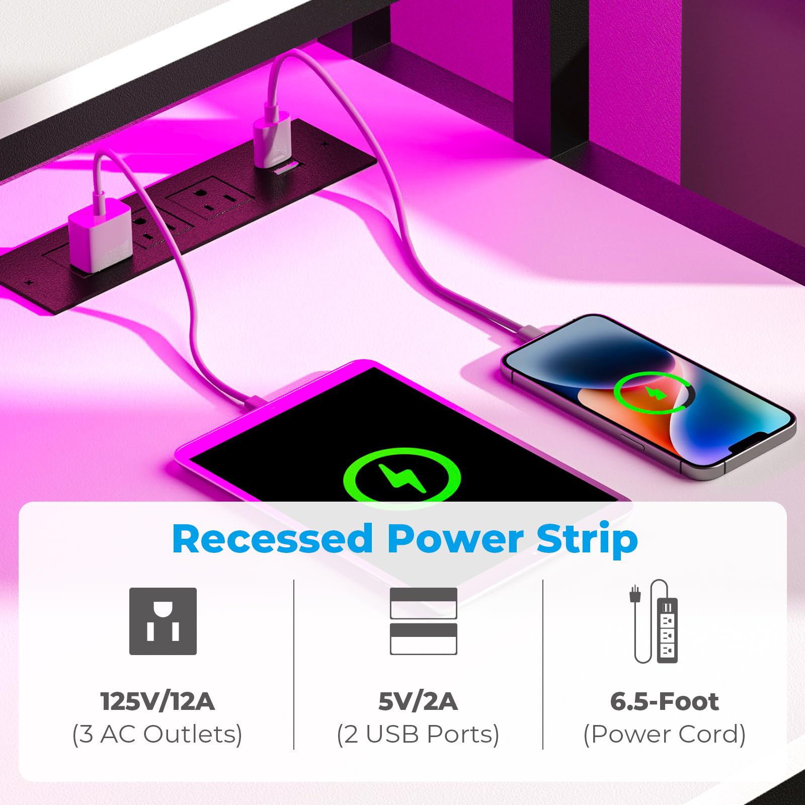 - Gaming Desk with LED Lights: Enhance your gaming experience with this sleek white desk featuring an RGB light. With 20 colors, 22 dynamic modes, 5 adjustable brightness levels, and 10 speeds, the small desk allows you to customize the lighting according to your mood and gaming scenario.