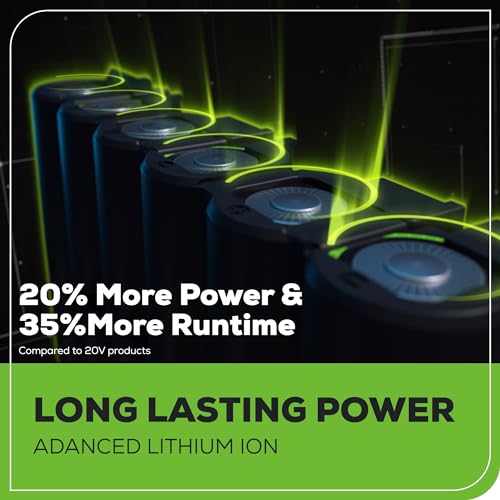 - 【Greenworks 24V Lithium-Ion battery】provides 20% more power and 35% more run-time versus 20V competition, and delivers fade-free power with no memory loss after charging.