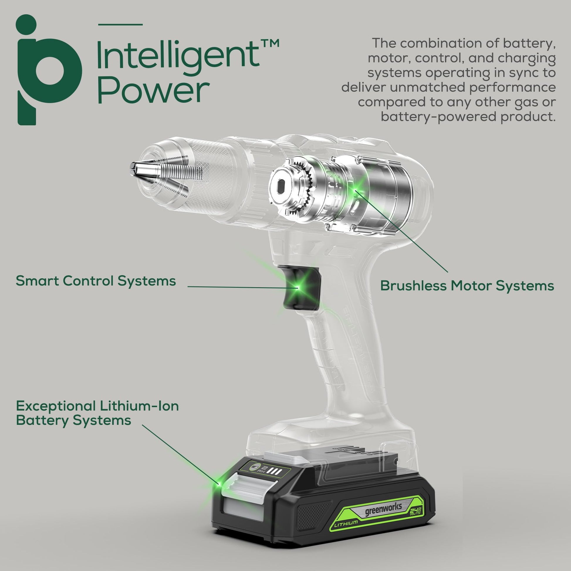 - 【Highly Efficient Brushless Motor & 2Ah Batteries】 delivers more power at 2X More Torque, cooler operation at high speeds, enhanced battery runtime and longer service life. 2Ah batteries can ensure that your Greenworks tool is always ready for use when you are.