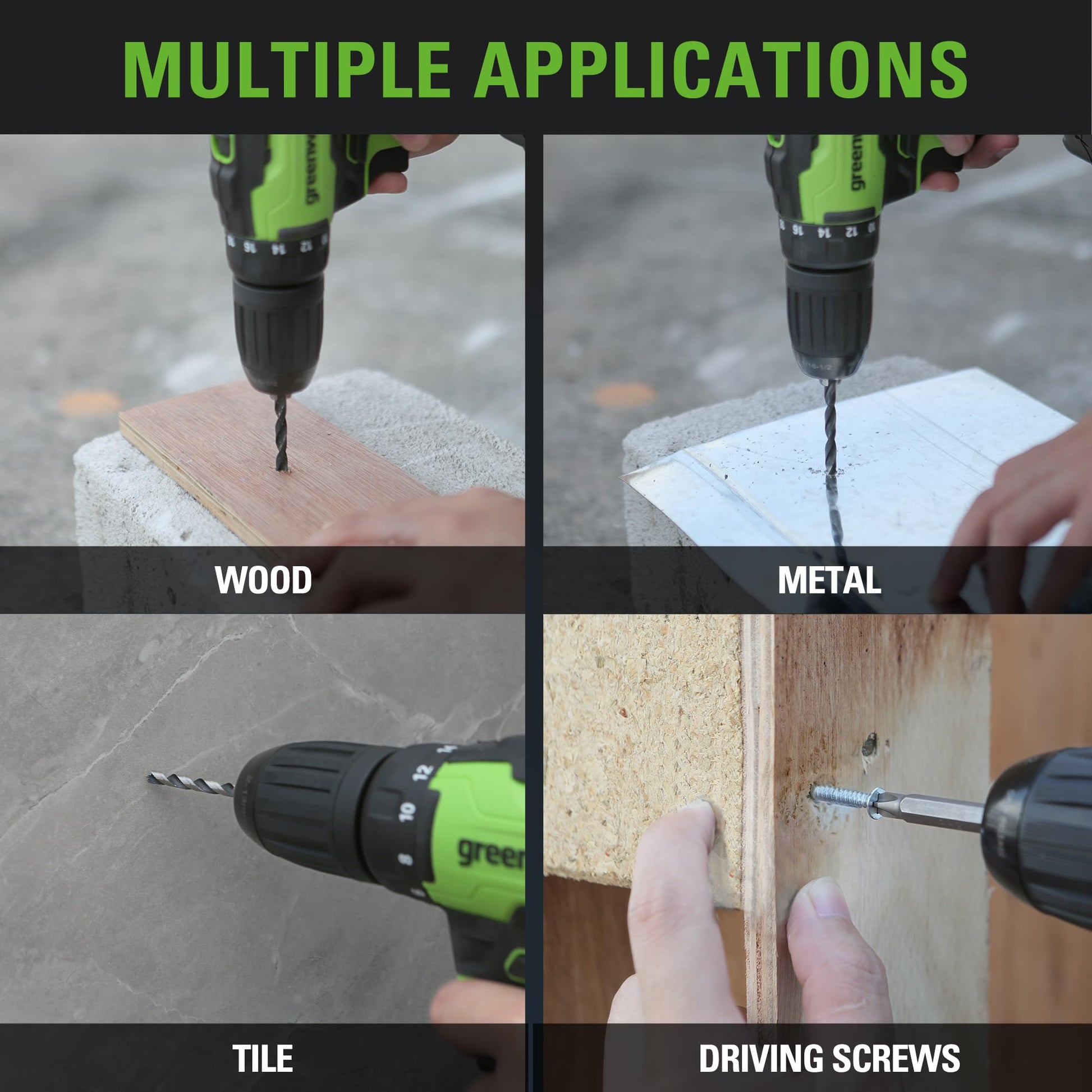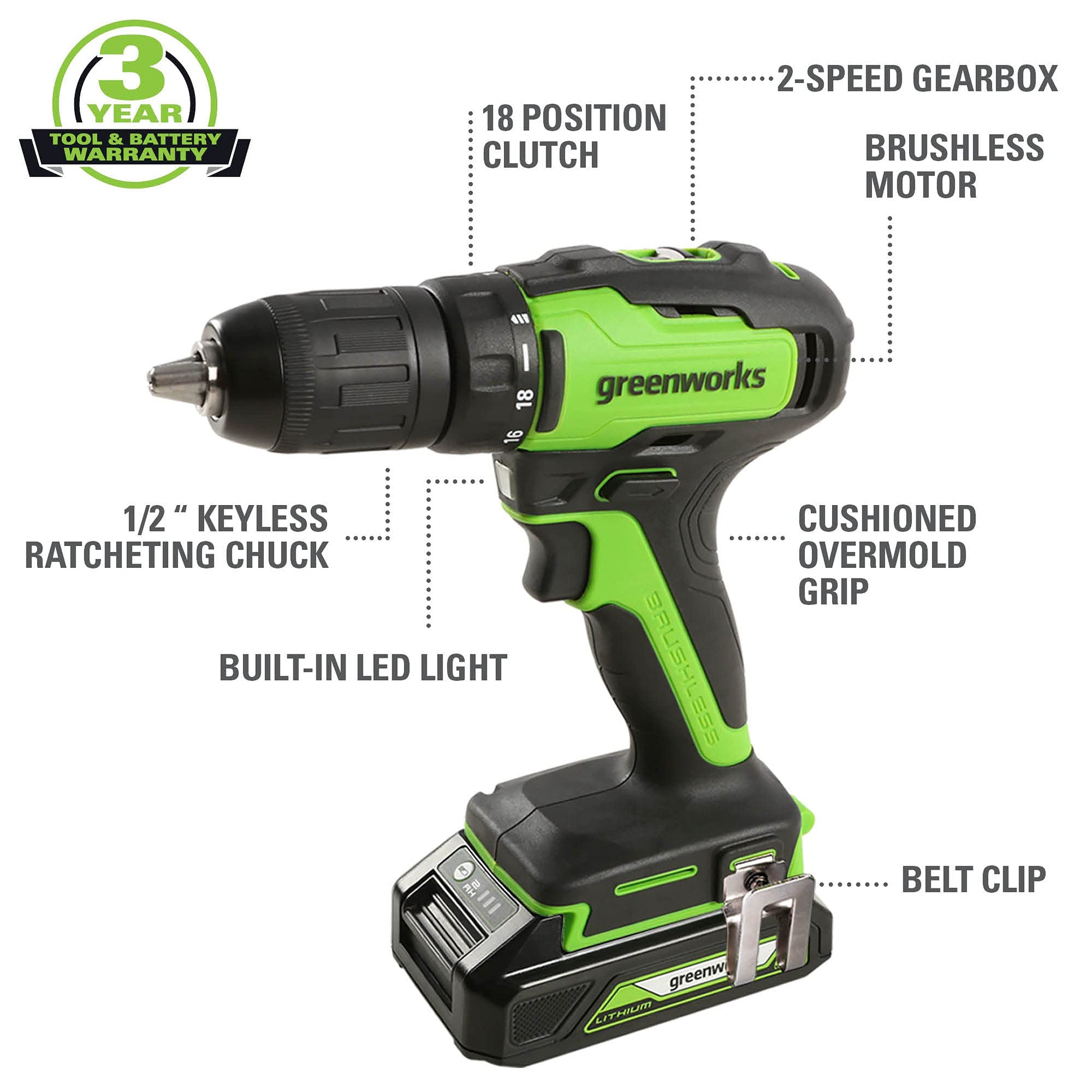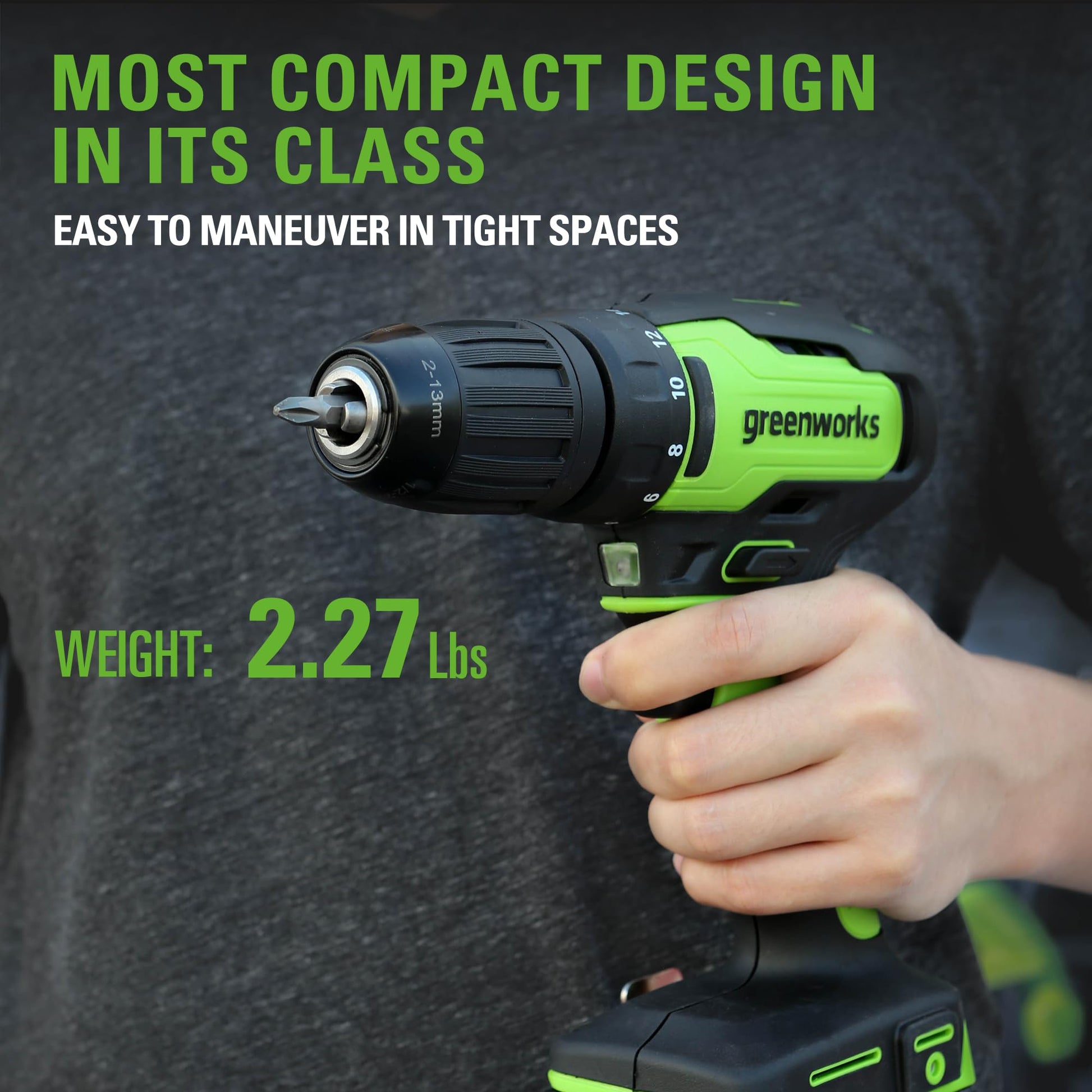 - 【One Battery for All & Widely Applications 】Our lithium-ion batteries are compatible with 125+ Greenworks tools in the same voltage range for total freedom of movement when gardening without tangled cables. Our Greenworks high quality power tool combo kit is ideal for hanging pictures, assembling or repairing furniture, tightening screws and many other DIY and craft projects. Our drill is also an ideal gift for your mom, wife, girl friend, daughter, or an independent friend.
