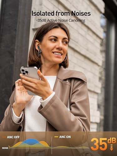 - 🔋Noise Cancelling Wireless Earbuds: Powerful 35dB Active Noise Cancellation (ANC), these earbuds deliver immersive, noise-free sound quality, automatically pickup and cancel 95% of ambient noise.