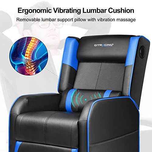 GTRACING Gaming Recliner Chair with Bluetooth Speakers Racing Style Single Gaming Sofa Modern Living Room Recliners Ergonomic Comfortable Massage Home Theater Seating, Blue