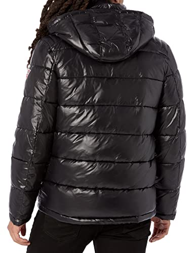GUESS mens Midweight Puffer Jacket Down Alternative Coat, Black, Large US