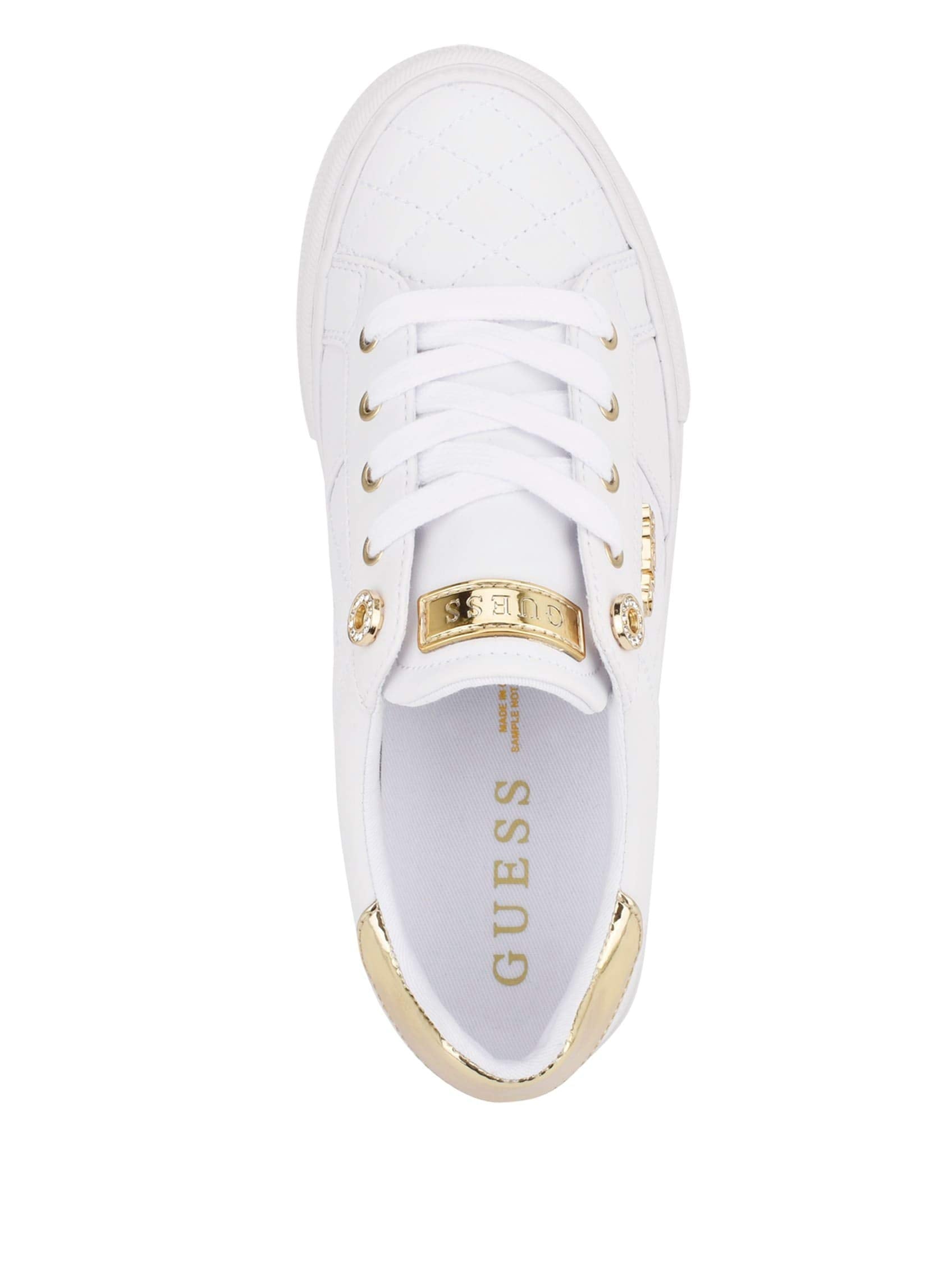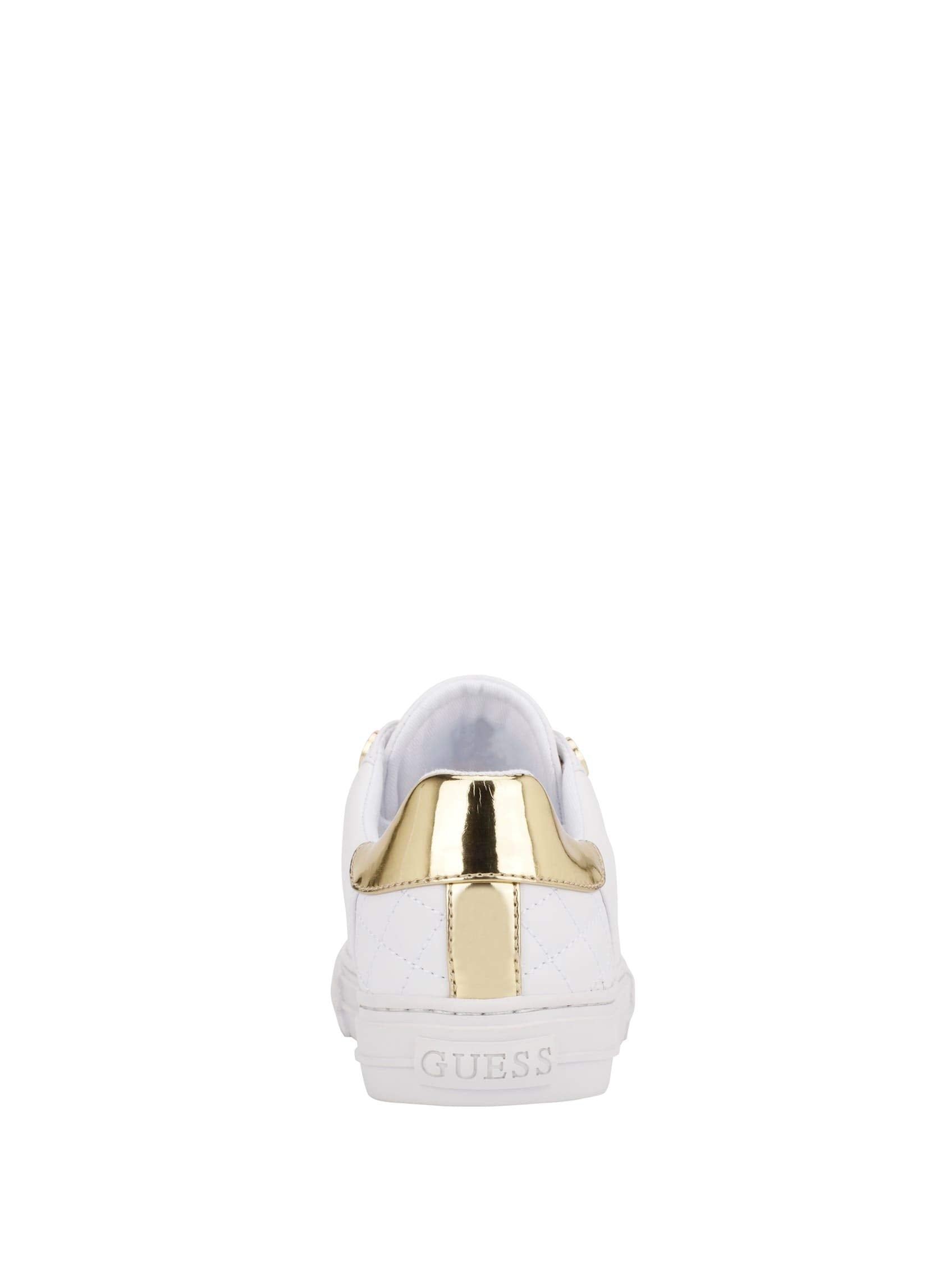 - This lace up look features GUESS logo hardware on the side with the hottest fashion colors of the season mixed and matched. This shoe is comfy, cool and ready to knock your socks off.