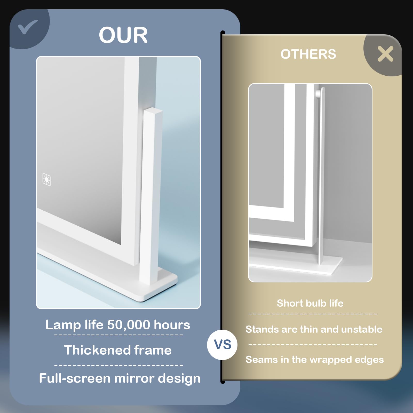 - 👍【Upgrade brightness】Most of the makeup mirrors with light bars on the market only have 80 light beads, which makes consumers feel that the lighting is not enough. We have improved on this! We have a full 120 light beads light bar per meter,which greatly improving the brightness of the makeup mirror.