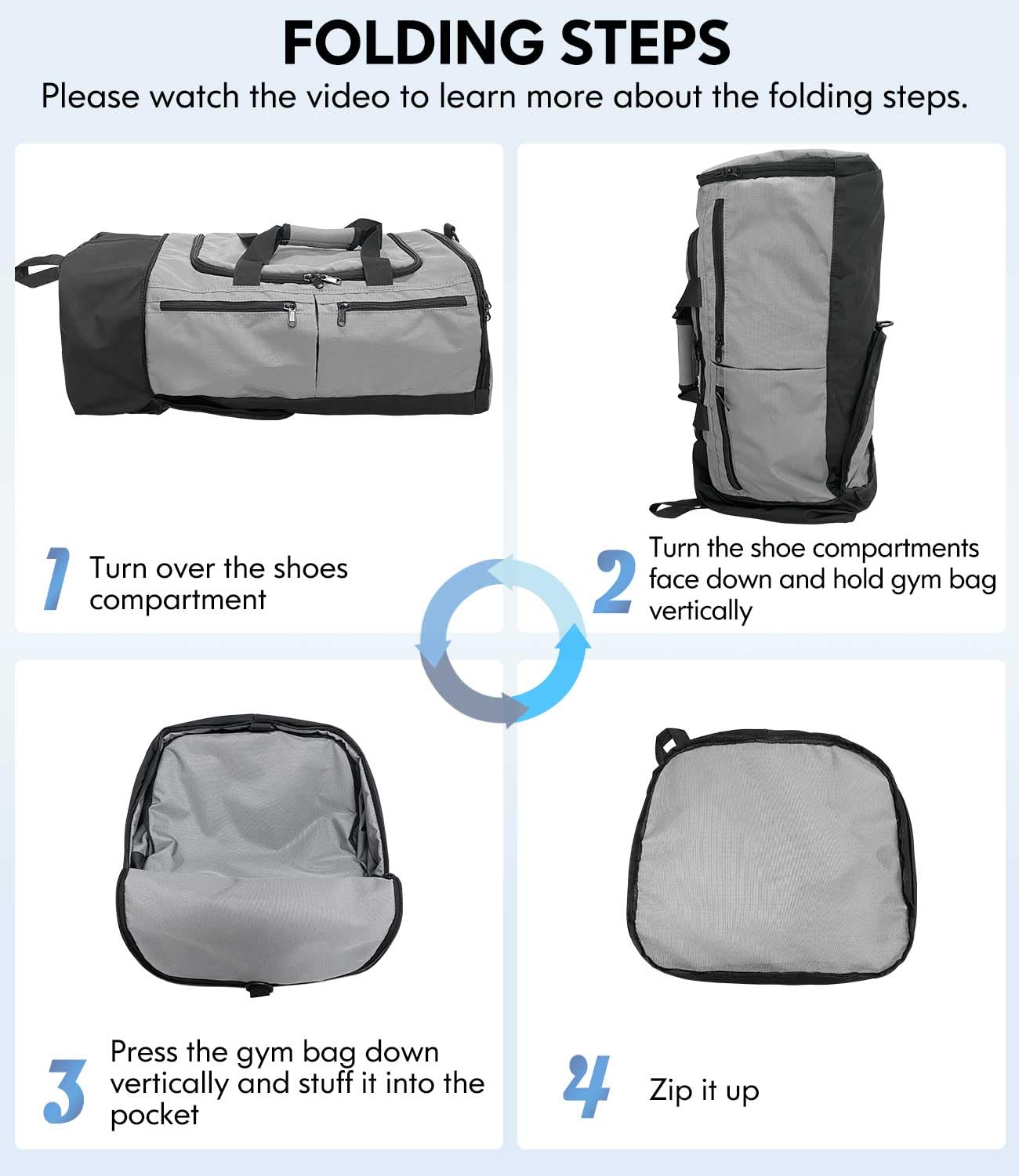 - FOLDABLE & LIGHTWEIGHT - This gym bag can be easily folded into a compact size of 11.4 x 9.8 inches. Capacity 35L yet only 1.4 pounds offer the same amount of space as a sports duffle bag - minus the weight and bulkiness. Our gym bags for men & women will ensure an organized and lightweight fitness experience.