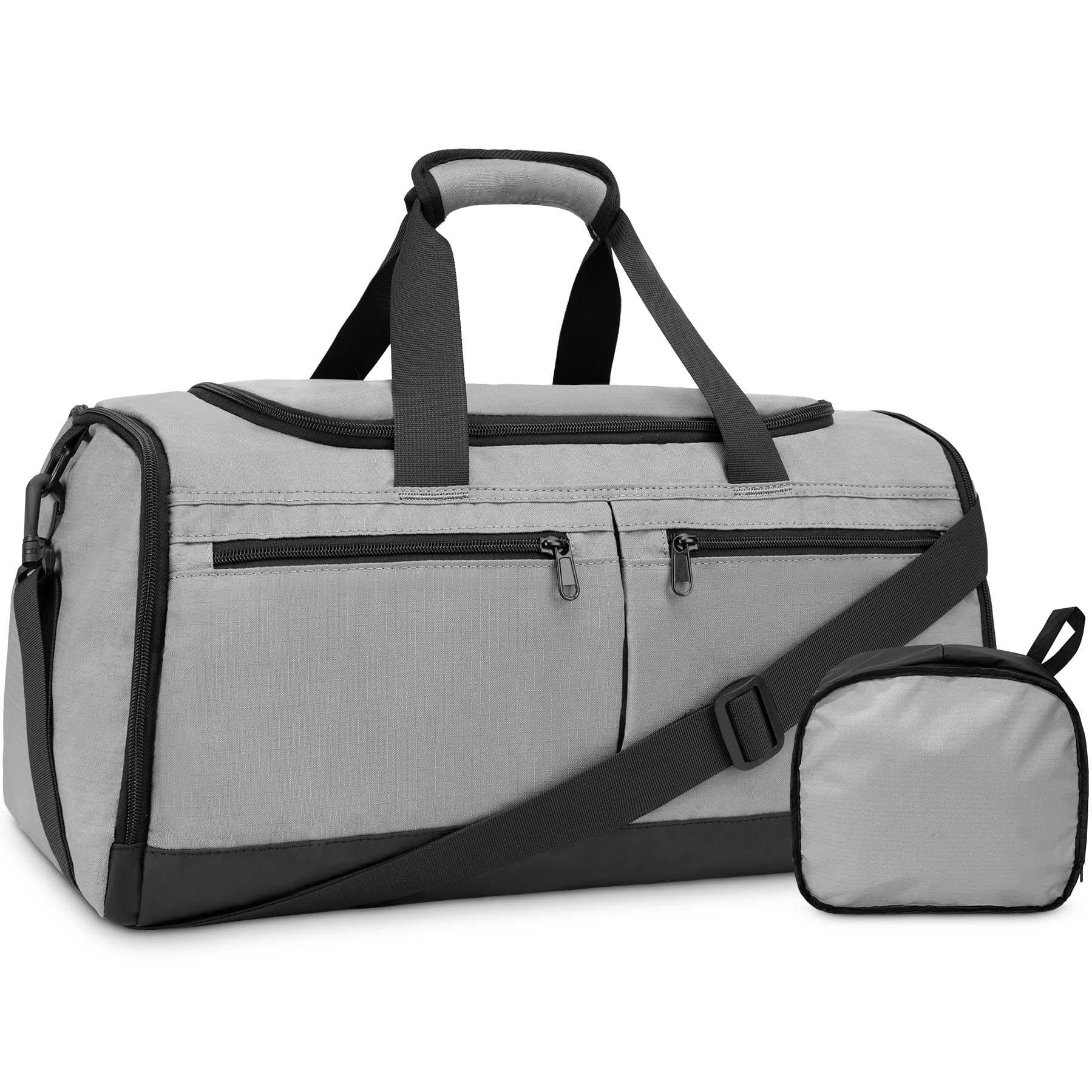 Gym Bag for Men Women, Foldable Travel Duffel Bags with Shoe Compartment & Wet Pocket, Lightweight Weekender Overnight Duffle Bag, Water Resistant Workout Sports Bag, Grey