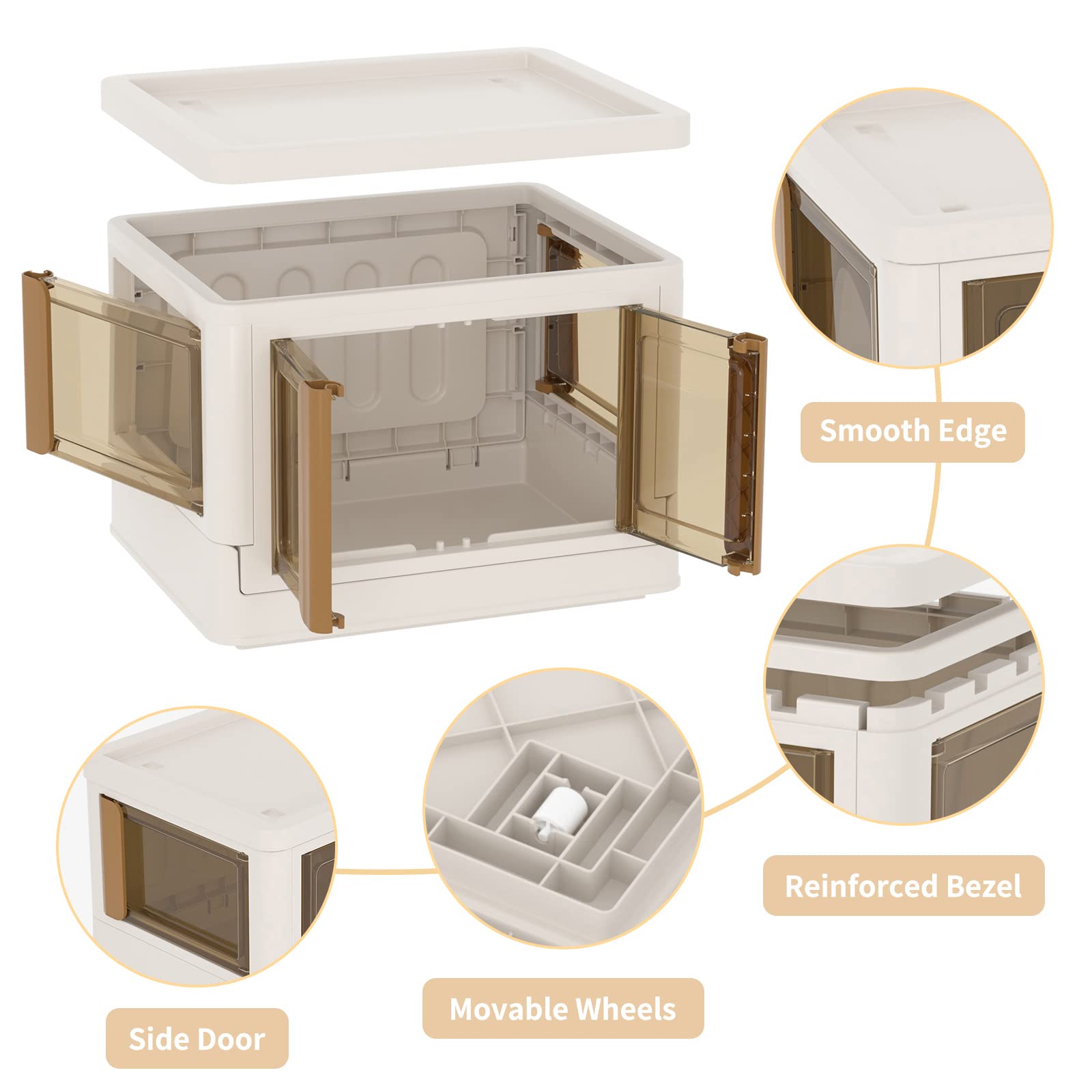 - ❤️Sturdy & Stackable: The plastic collapsible storage bins are made of thick and durable PP material, with strong load-bearing capacity, stable and sturdy. The portable storage bin allows to stack bins together tightly, the top grooves matching with the wheel. Transparent toy organizers and storage is clear at a glance, and it is most suitable for classification and management when looking for things.