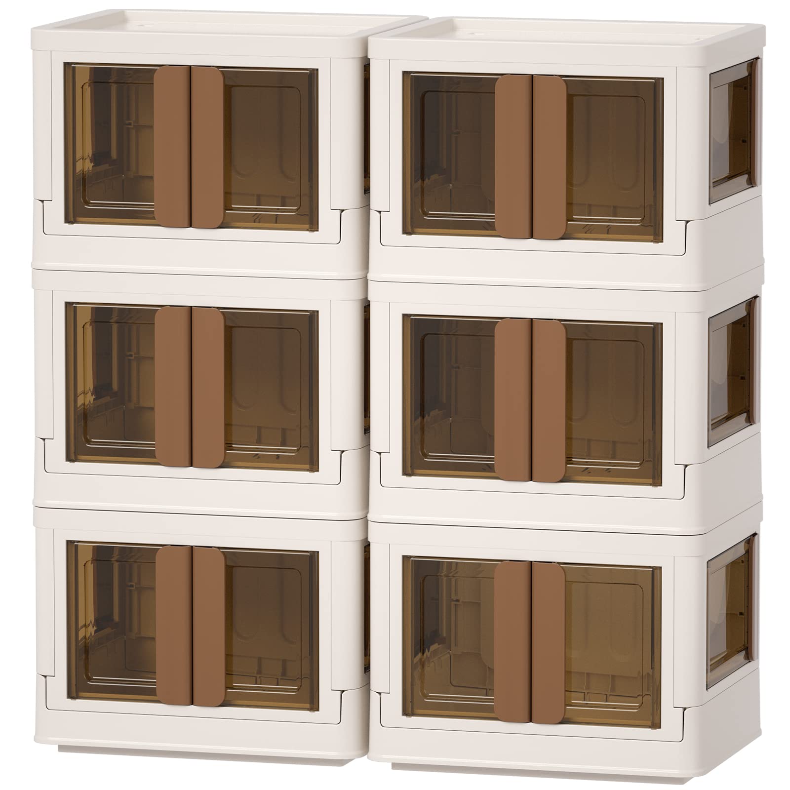 HAIXIN Stackable Storage Bins, Clear Collapsible Storage Bins with Wheels, 38Qt Storage Containers Bakers Rack Storage Shelves for Pantry Closet 6 Pack