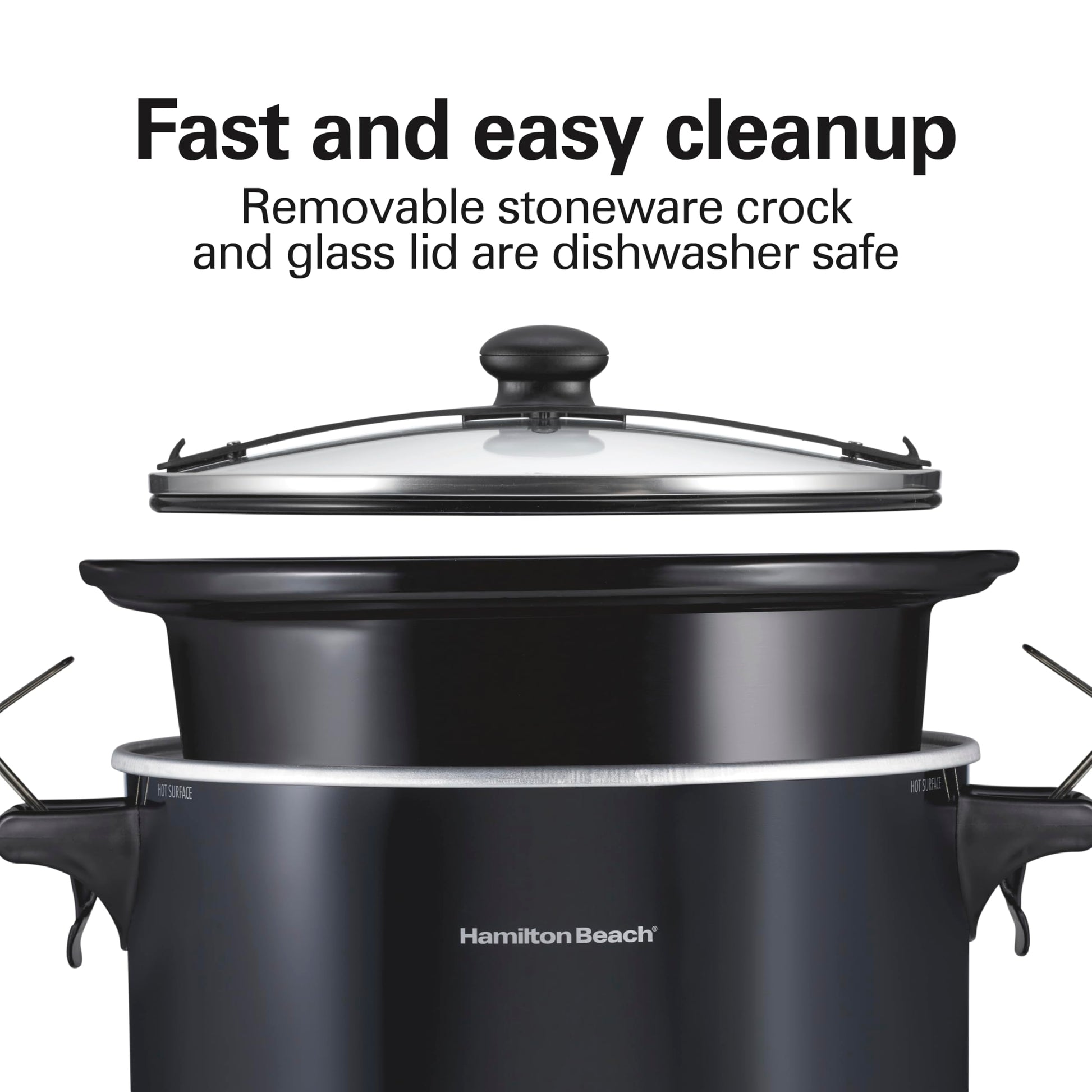 - SIMPLE TO CLEAN: The removable stoneware crock and glass lid are dishwasher safe for easy cleanup.