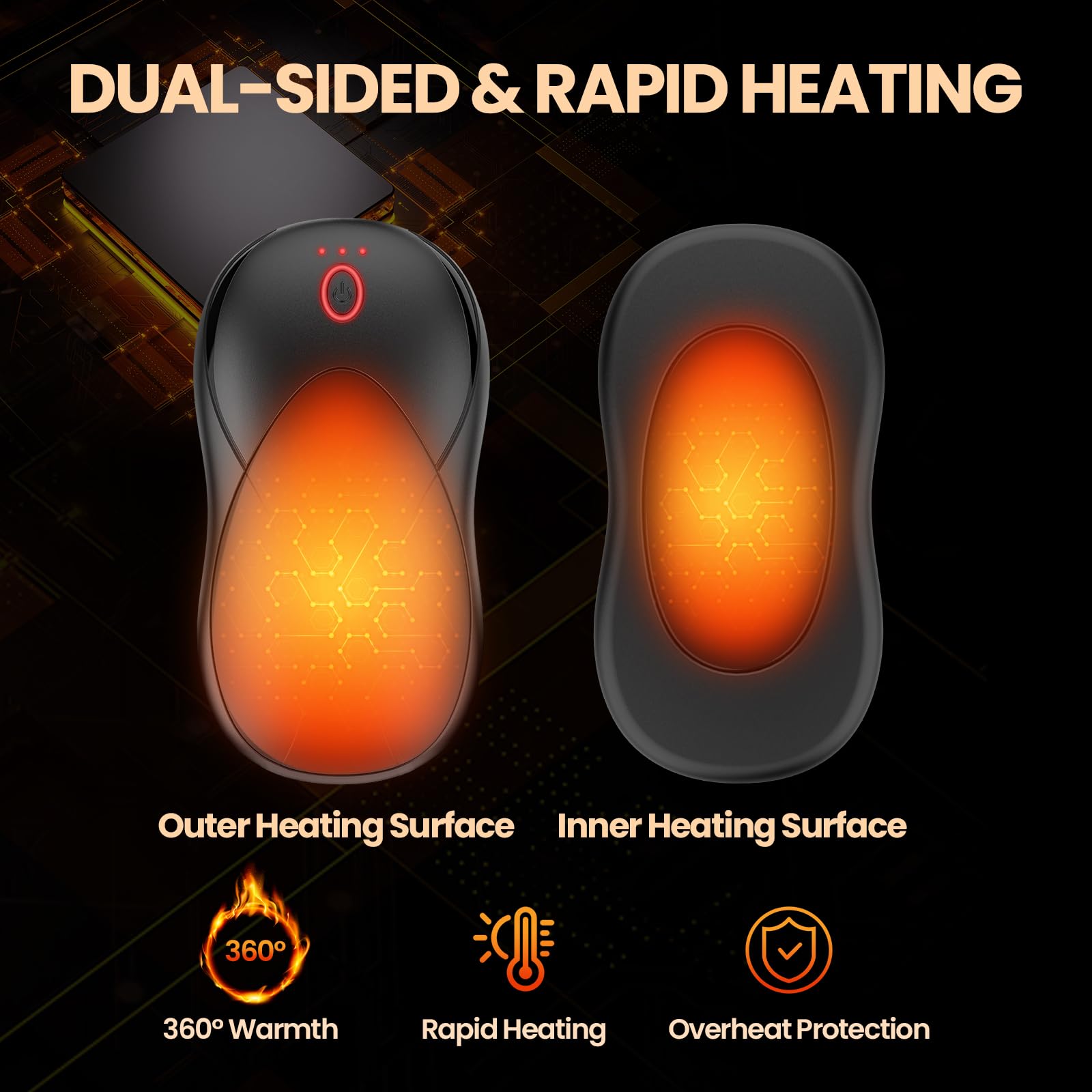 - Dual-Sided & Rapid Heating: With the unique design of double-sided heating and the use of high-efficiency heating materials, hand warmers can heat up quickly within 2S and let your hands feel the warmth of 360° surrounded. It is perfect for warming your hands in outdoor activities such as camping, hunting, skiing, golf, etc.