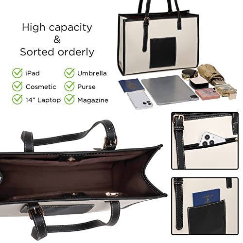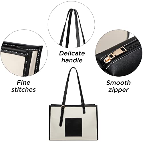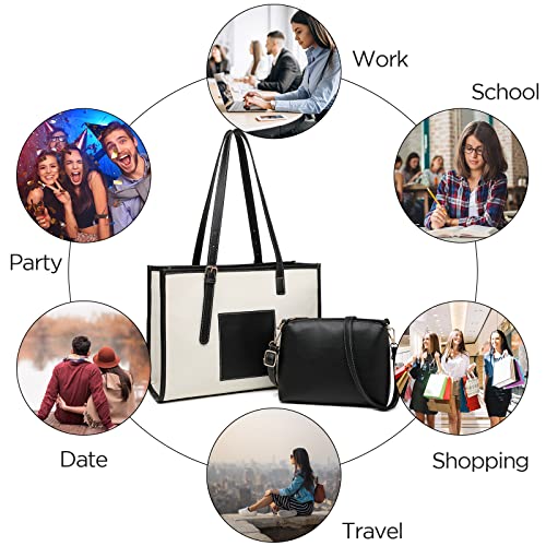 - 【2 Piece & Color blocking】The fashion women tote bag comes with a small cossbody bag and an adjustable long strap. Put the small bag in the large tote bag or you can use it alone as a cossbody bag. It can be used as a tote bag, daily purse, shoulder bag, top handle bag, work bag, laptop bag etc.