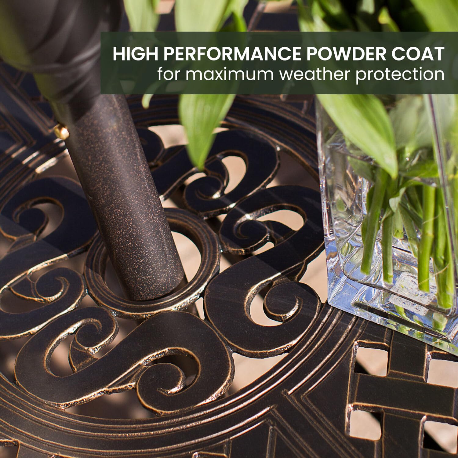 - Sturdy & Durable: Made with heavy-duty, rust-resistant, weather-resistant cast aluminum frames, this stylish dining set has a powder coating finish, which protects it from rust, scratches and harmful UV rays