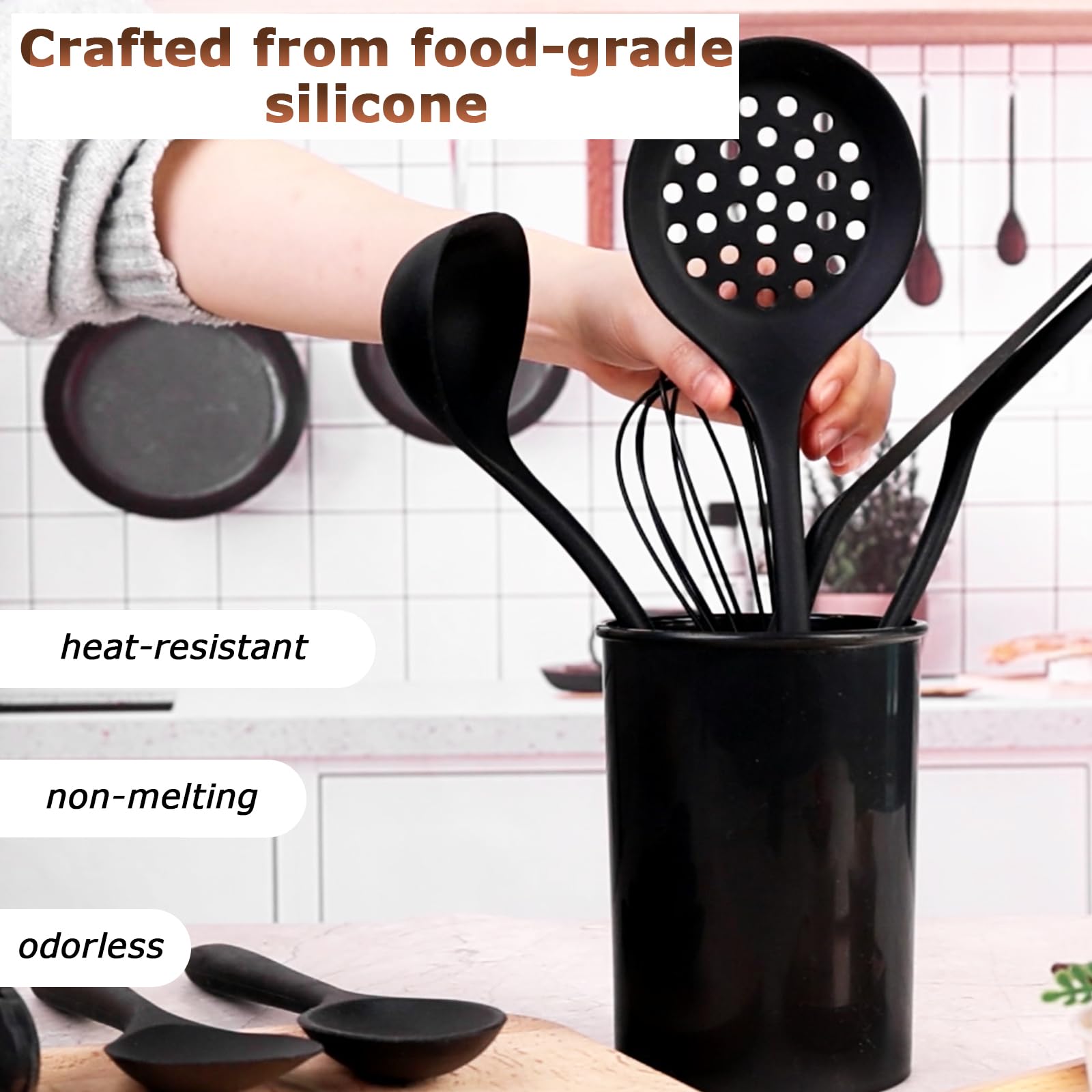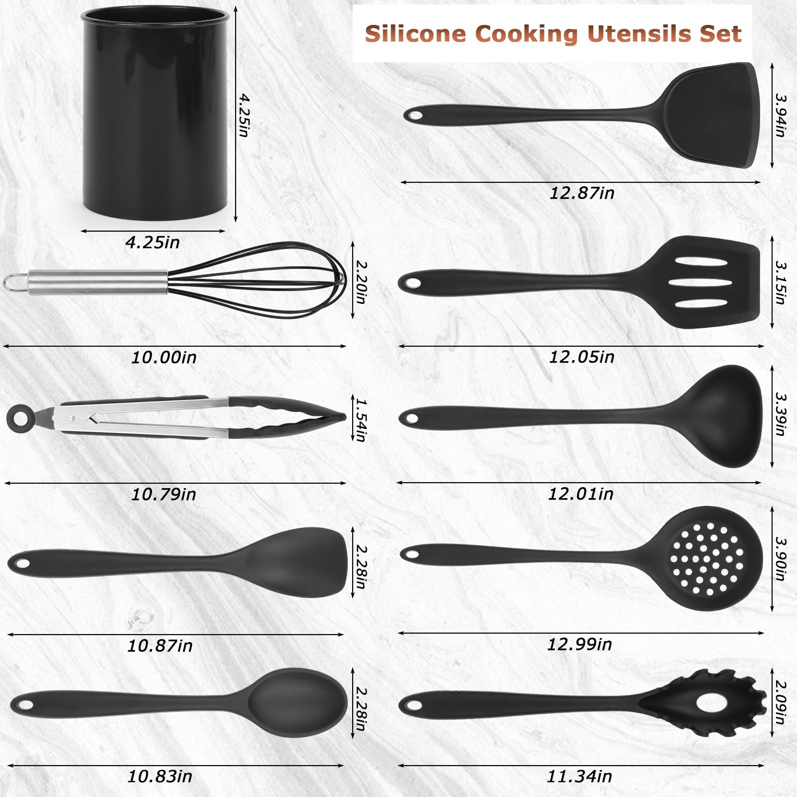 - High Quality - Our kitchen utensil set is crafted from food-grade silicone, BPA-free, very safe to use in any type of food. The Silicone Cooking Utensils can withstand temperatures up to 446°F. Heat-resistant, non-melting, odorless.