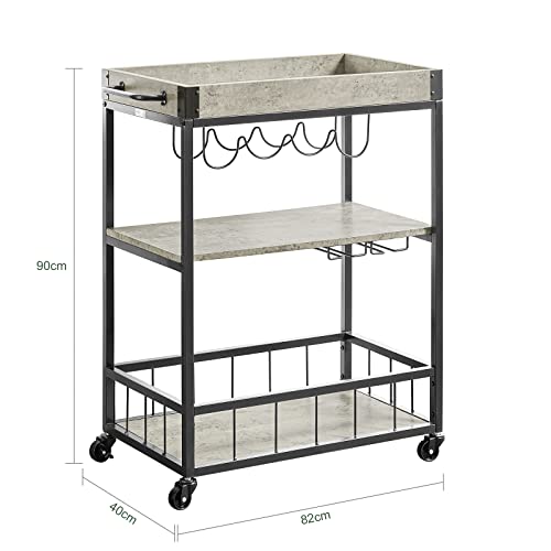 - This stylish industrial vintage serving trolley features wine rack and hanging glass storage. Holds 4 wine bottles and 6 wine glasses.