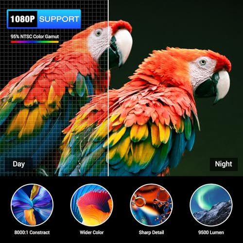 - 💖【1080p Support Projector-Bring You Outstanding Visual Experience】 HAPPRUN Mini Projector Features with 1080p Support, And 8000:1 High Dynamic Contrast Ratio to Restore the Real Color Content. With 95% NTSC Technology, This Home Movie Theater Projector Presents You with a Real, Dynamic, And Color-Vibrant Projection Image Quality.