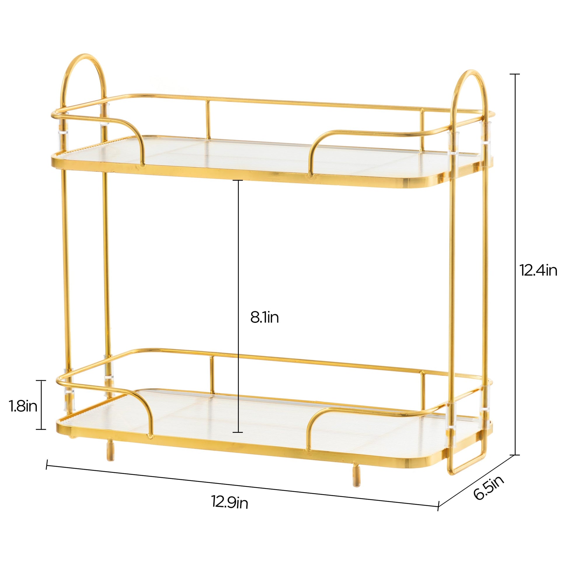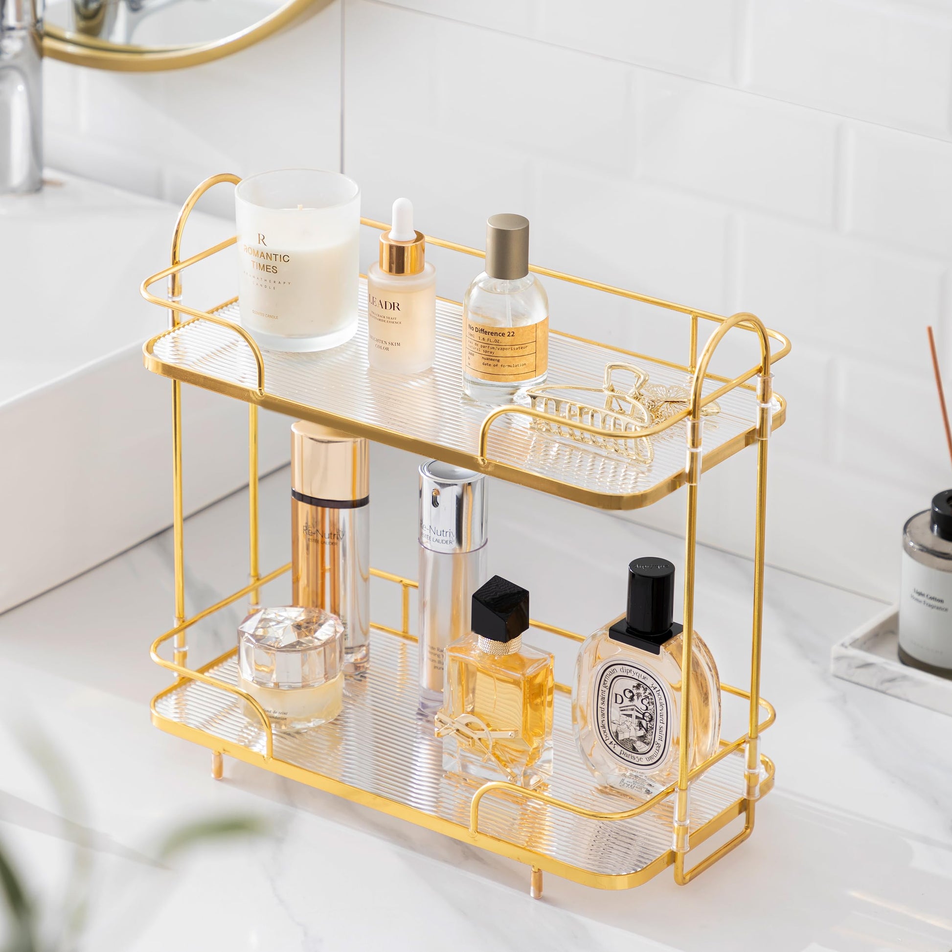 HBlife Bathroom Countertop Organizer 2 Tier Makeup Organizer Luxury Perfume Tray Skincare Storage Cosmetic Organizer Bathroom Counter Shelf for Bathroom, Gold