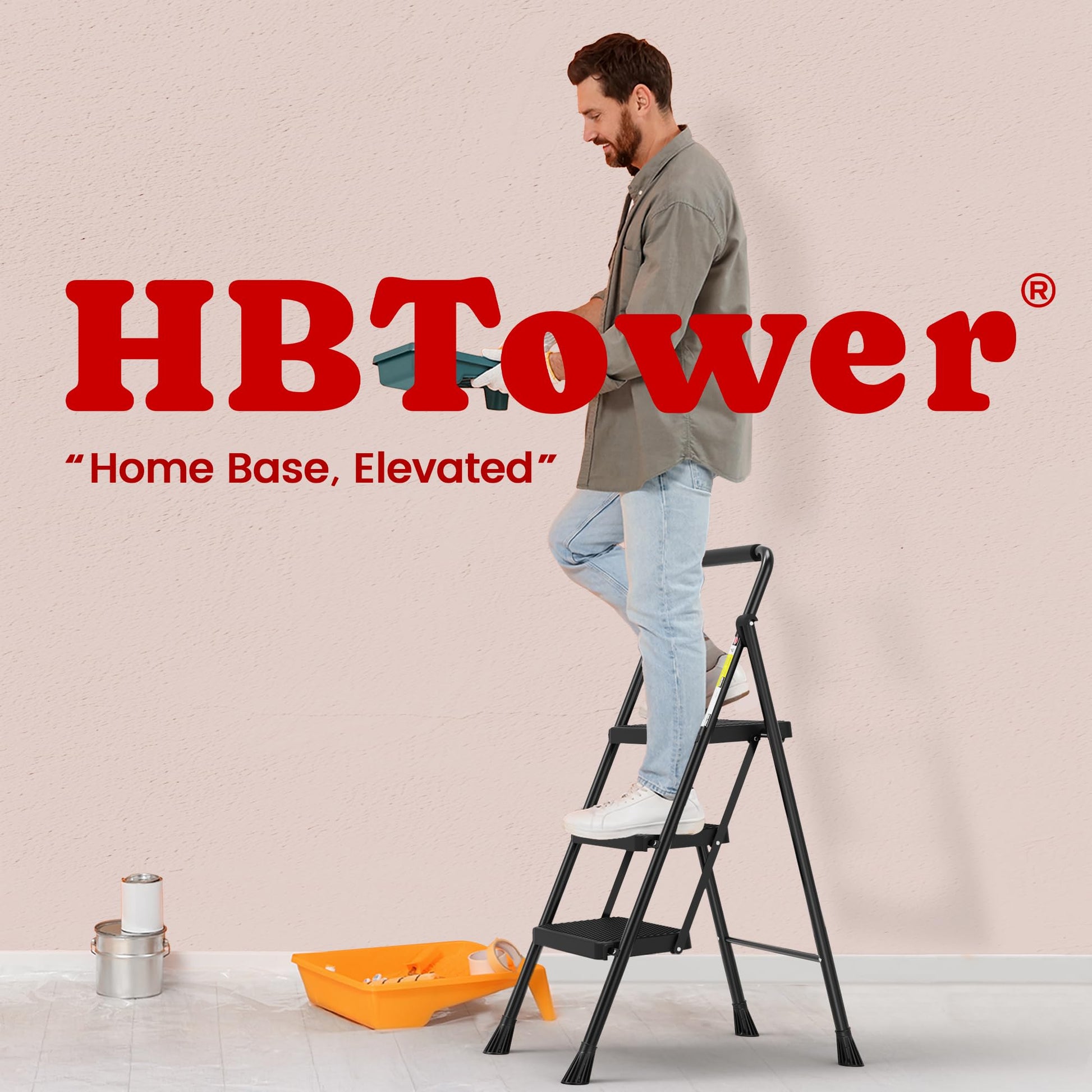 - UPGRADE STEP LADDER: Open: 20.1" x 26.8" x 40.9", Folded: 44.5" X 20.1" X 1.6", Net Weight: 11.5 pounds. HBTower Safety Folding 3 Step Steel Ladder is made for you!