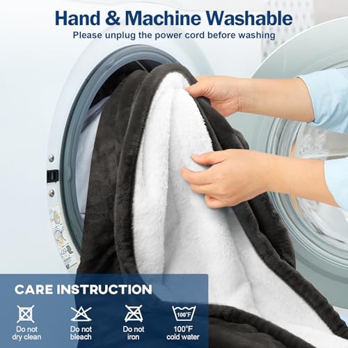 - Machine Washable: The controller cord is detachable. Please take off the controller cord before washing, electric throw blanket can be both hand and machine washed. To keep the cozy blanket being its best, we recommend line dry or tumble dry on low temperature. Do not plug in until completely dry. During use, try not to stack the heated throw blanket electric together for a long time to prevent partial excessive temperature will cause damage to your body.