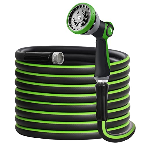 Heavy Duty Garden Hose 5/8" Super Flexible Water Hose with 10 Function Sprayer Nozzle 3/4" Solid Fittings Leakproof Hose 450 Burst PSI Watering Pipe Car Wash (25FT, Black+Green)