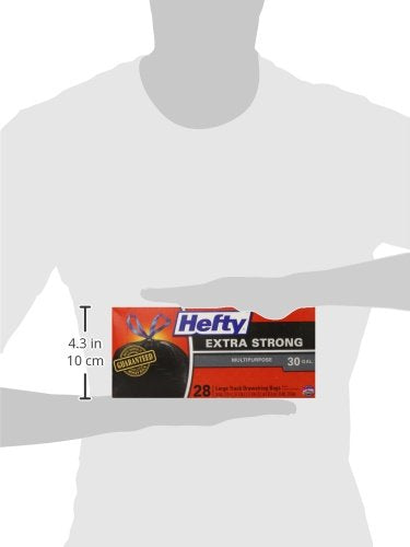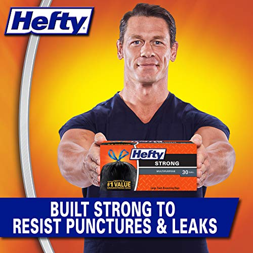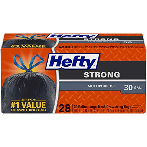 Details: Hefty Strong Large Multipurpose Trash Bags help you tackle cleanup jobs all around the house, thanks to their Hefty! Hefty! Hefty! strength and large capacity. With their 30 gallon size, these garbage bags are ideal for collecting old clothes for donation, seasonal decorations, everyday kitchen trash and more. Signature Hefty quality and thick 1.05 millimeter plastic ensure these large trash bags deliver superior puncture resistance for outside and inside jobs. Plus, with their dependable drawstring closure, these heavy duty plastic trash bags resist breakage and make transporting easy. Count on these large drawstring trash bags for the strength and reliability you expect from Hefty. Don’t forget: all Hefty trash bags are backed by a 100..