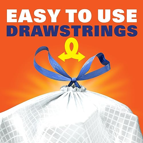 - DEPENDABLE DRAWSTRING CLOSURE—The durable drawstring on these plastic garbage bags makes it easy to transport heavy loads, donations, seasonal items & more