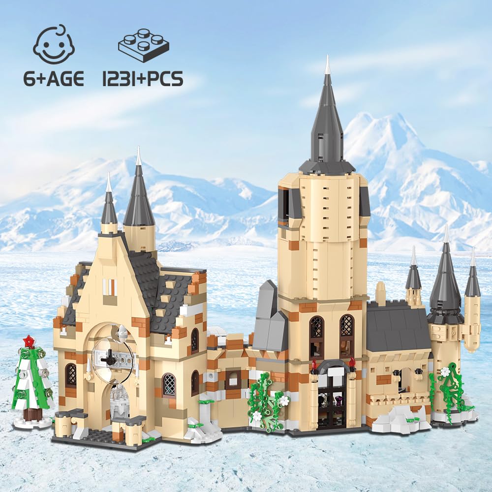 - HARRY CASTLE CLOCK TOWER BUILDING TOY SET: This Magic Castle Architecture Model has 1231 blocks including the classic clock tower, fountain pool and board room, plus many more scenes and locations for extended role-playing games, perfect for office indoor collections and play.