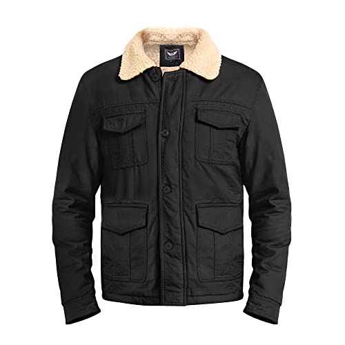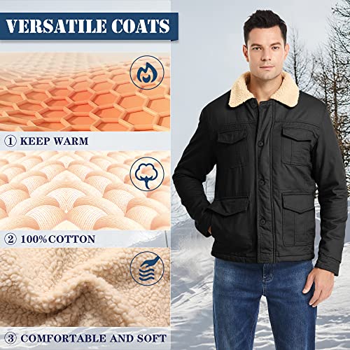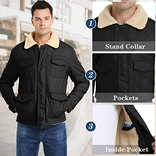 Heihuohua Men's Winter Thicken Outwear Coat Fleece Jacket with Flannel Collar, Black, Large