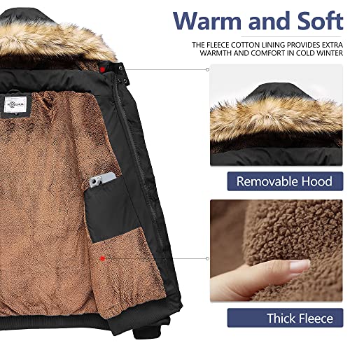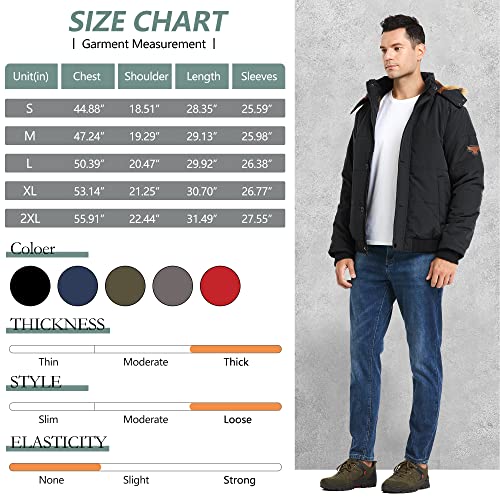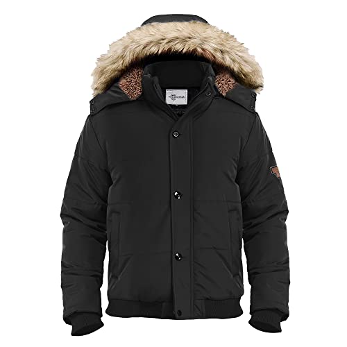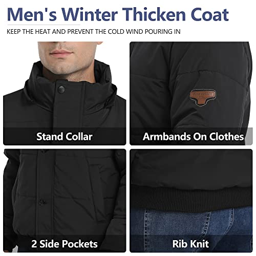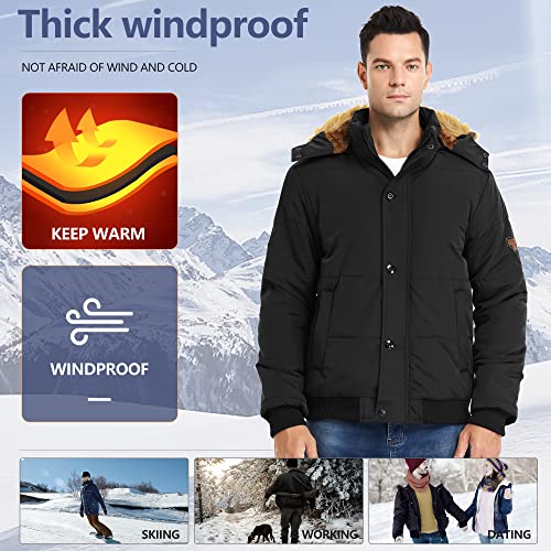 Heihuohua Men's Winter Thicken Warm Puffer Removable Hood Coat, Black, Large