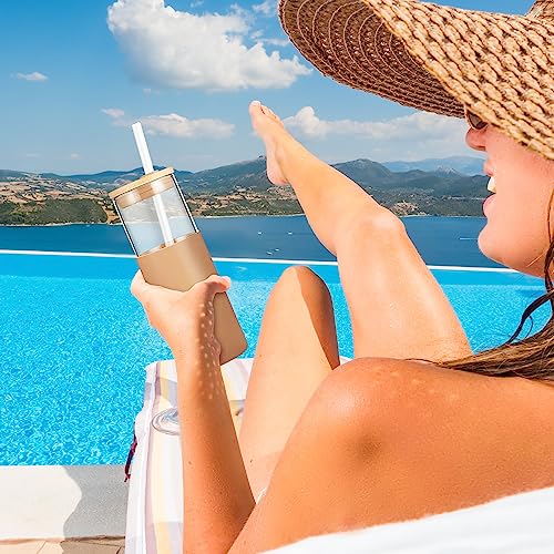 - Straw Included with Silicone Protective Sleeve: Reusable glass tumbler with straw. Easy to clean & durable, reduce waste. Suitable for traveling, food safe materials. BPA free.