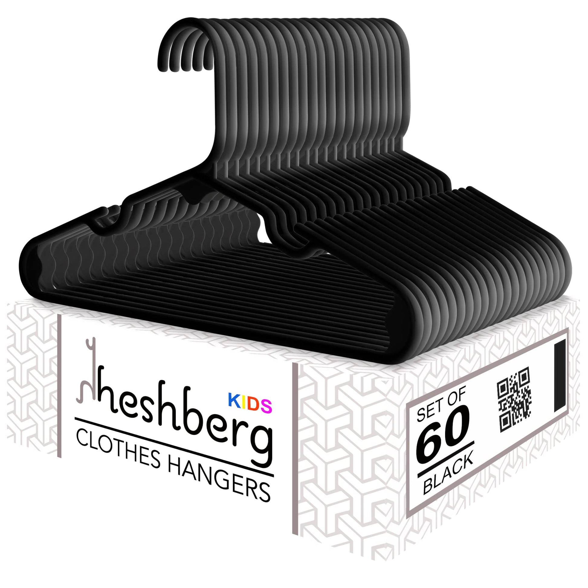 HESHBERG Kids Plastic Hangers 60 Pack - Black
