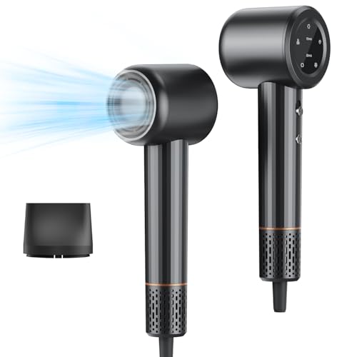 - High-Speed Fast Drying No Heat Damage: Hairdryer is equipped with 110,000 RPM high speed brushless motor, provides a strong wind speed reaches 70m/s max, which can quickly dry your hair in 2-6 minutes. Besides, professional hair dryer adopt patented thermostatic chips to detect and adjust temperature to avoid overheating hair injury