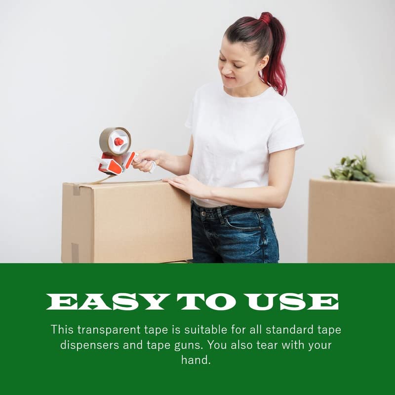 - STANDAED SIZE : Clear Packing Tape 2.5Mil x 1.88" x 72yds 12-Pack Total 864 yds,Our packing tape offers excellent holding power for packaging and shipping, easy to use shipping tape that will not split or rip during application.The diameter of core is 3 inch and perfectly suitable for all standard tape dispensers and tape guns. You also tear with your hand.
