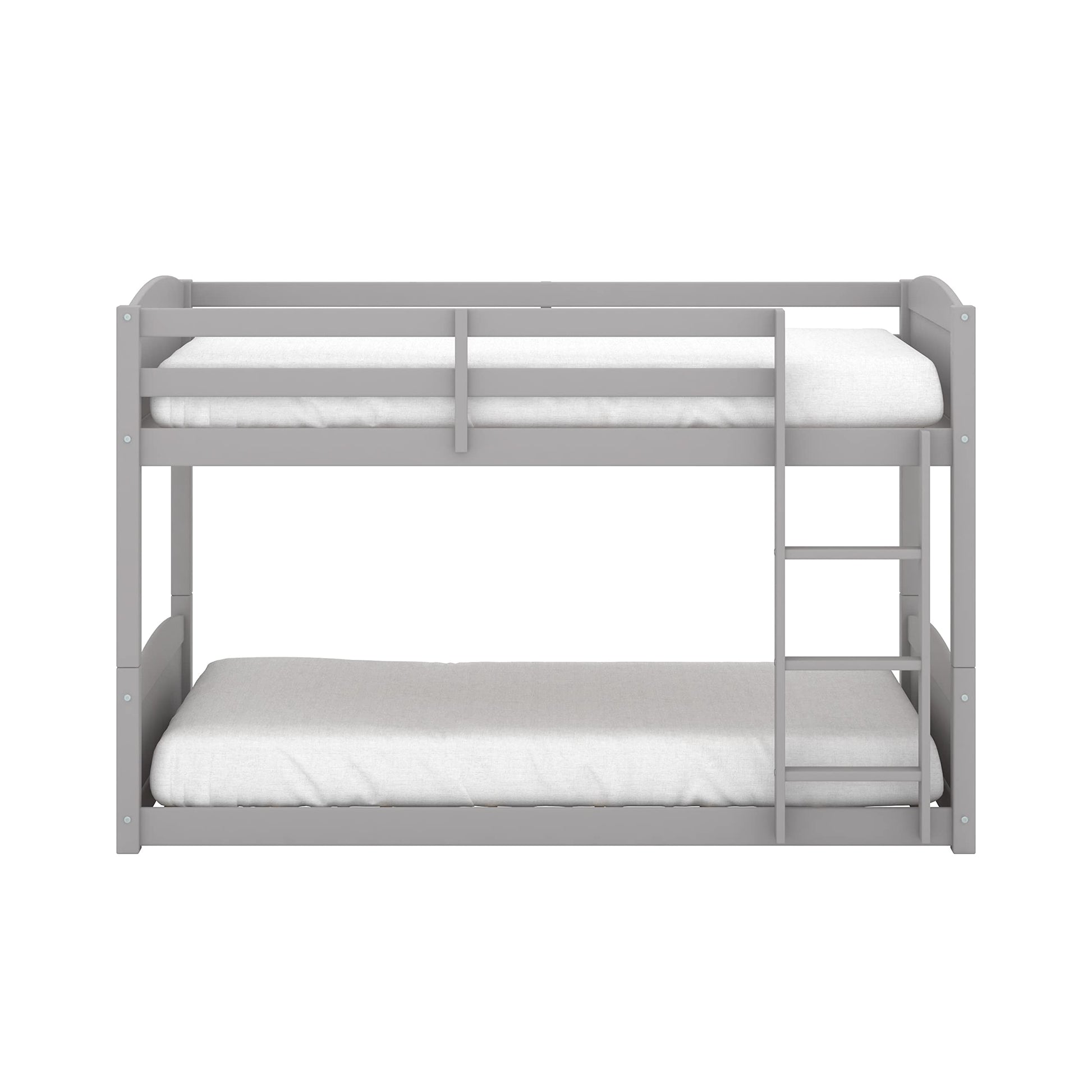 - Stylish Gray Solid Wood Twin Over Twin Floor Bunk Bed with shiplap design