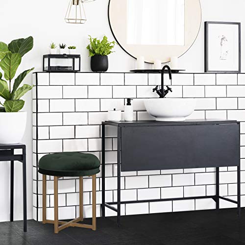 Details: Posh meets plush in this elegantly styled tufted backless round vanity stool. The sturdy modern x framed metal base featuring a gold finish is perfectly accented by an emerald green velvet tufted seat, creating the perfect blend of form, function and fashion. A luxurious addition to any bathroom, bedroom, or as an accent stool to any room, this vanity seat is evocative of the Victorian era with a modern Hollywood twist. The classic combination of a rich emerald green and gold complements regency, glam and chic decor. Assembly required.