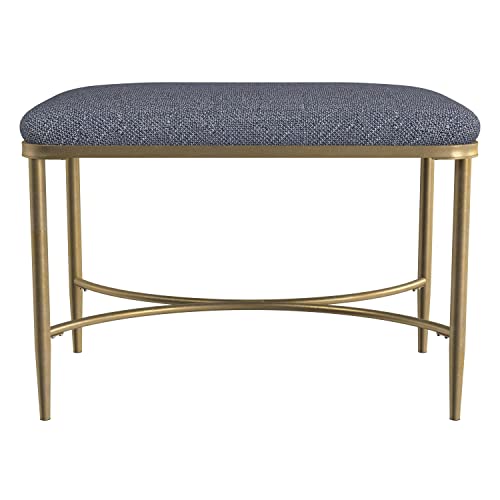 Hillsdale, Wimberly Modern Backless Metal Vanity Stool with Rectangular Seat for Makeup Room or Bathroom, Gold with Blue