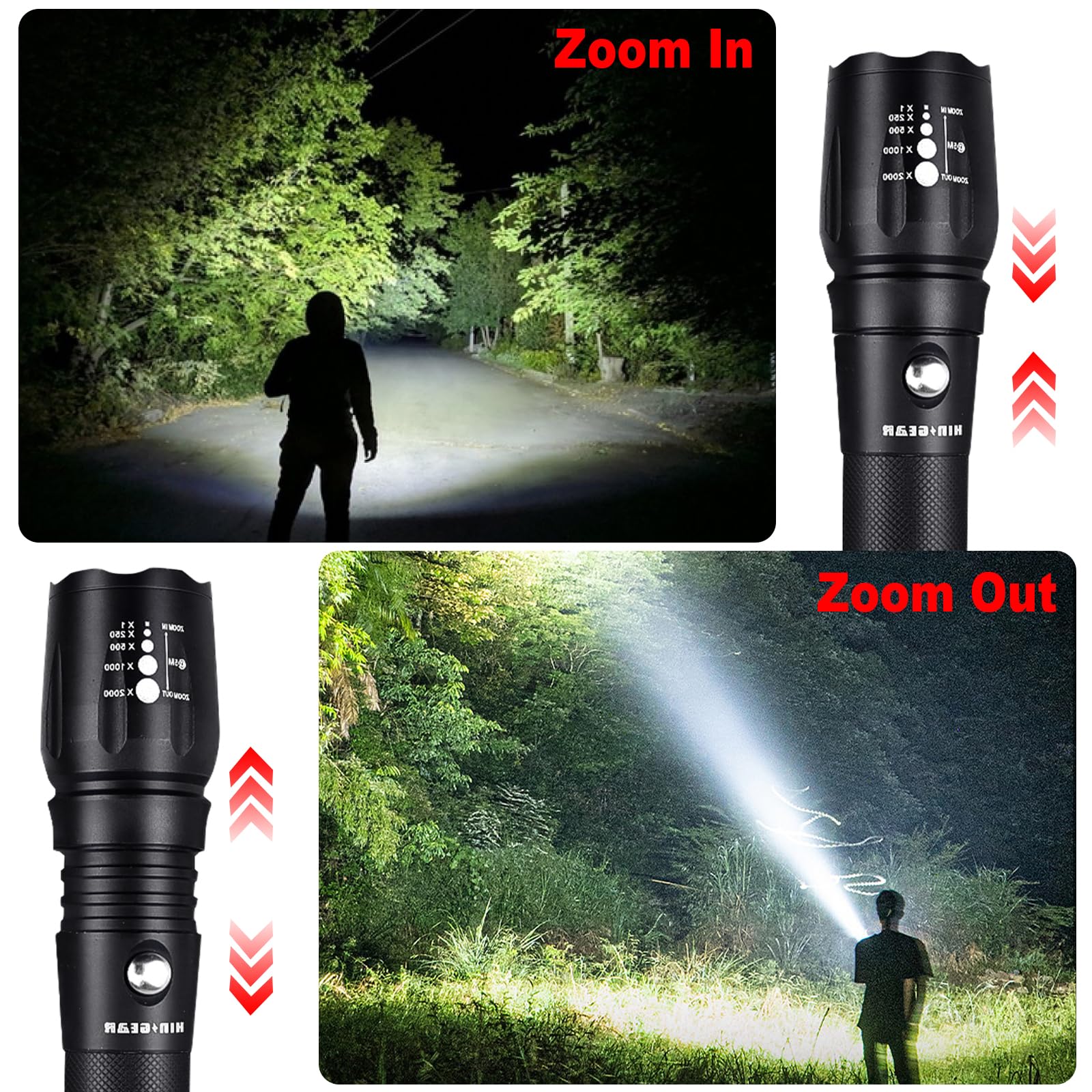 - Functional: The tactical flashlight is 5 modes and zoomable, tactical switch in the middle, softly press to adjust modes. Perfect for camping, hiking, emergency use and more.