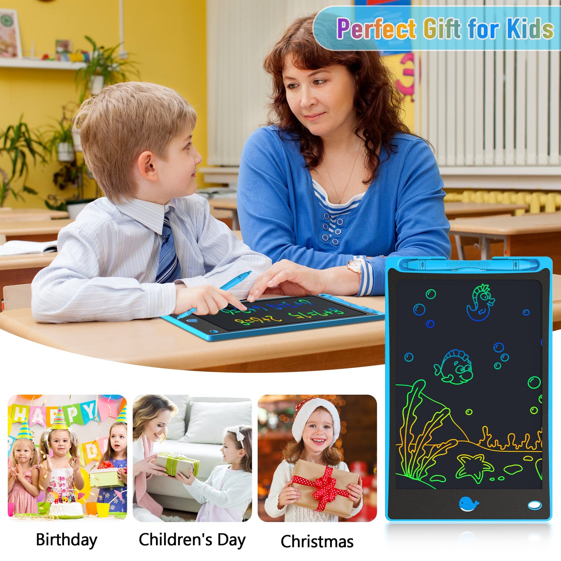 - đăGreat Gift Ideaă The multi-functional LCD writing tablet is a perfect gift choice for kids of all age groups. It can be an educational toy for preschoolers. It can also be a travel toy for long drives and road trips. A perfect parent-pick gift for 3 4 5 6 7 8 year old girls and boys on Valentine's Day, back to school, homeschool, birthday, Easter, Children's Day, Thanksgiving Day, Christmas and any occasion!