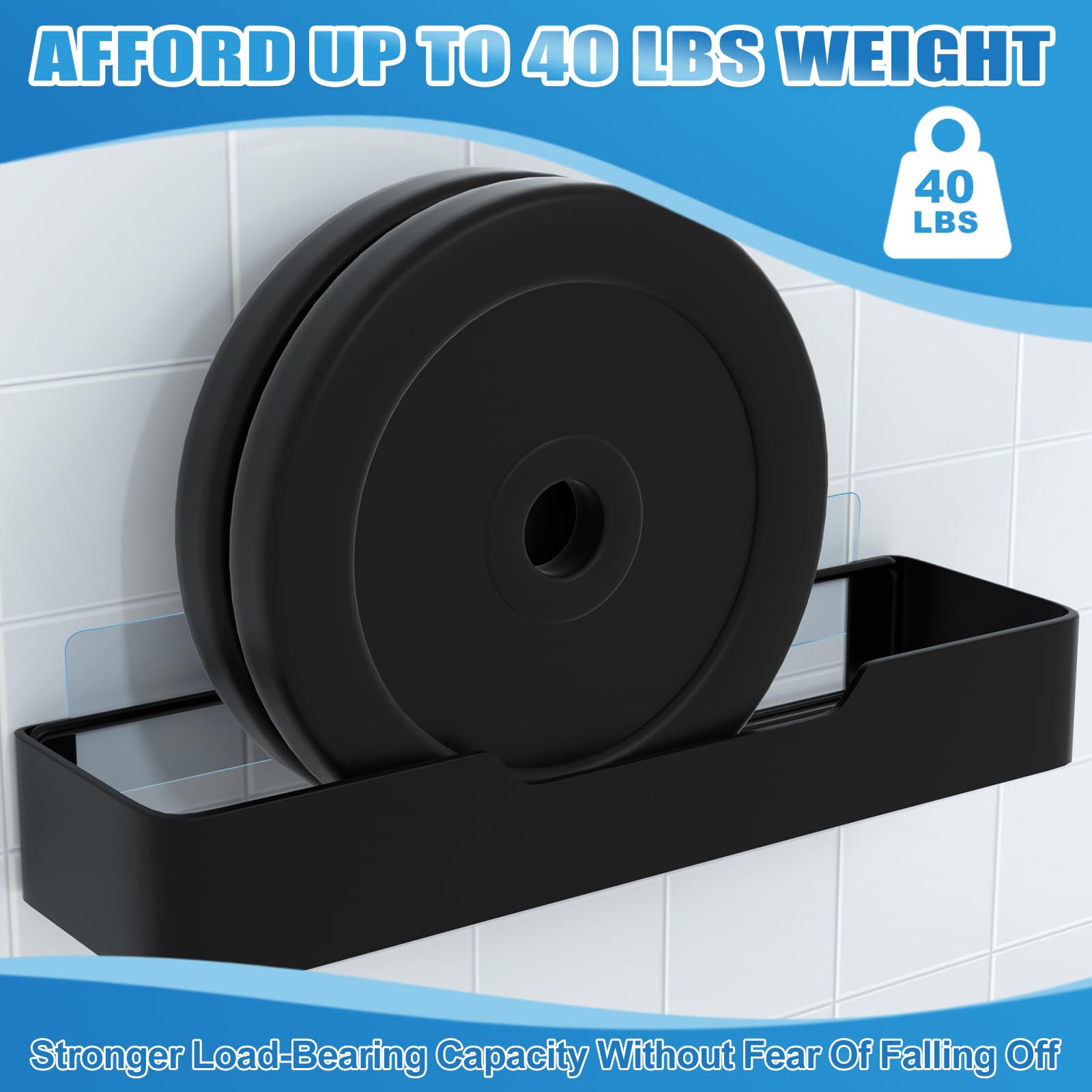 - 💦『40 LBS Bearing Weight』The newest upgraded version of the transparent non-marking adhesive provides you with stronger load capacity while maintaining the beauty of the bathroom. It has been tested by a professional agency, the adhesive shower shelves can hold up to 40 lbs which is twice that of other products on the market, so you don't have to worry about the loss caused by the shower organizer falling after installation. (Attention: Adhesive is NOT reusable!)