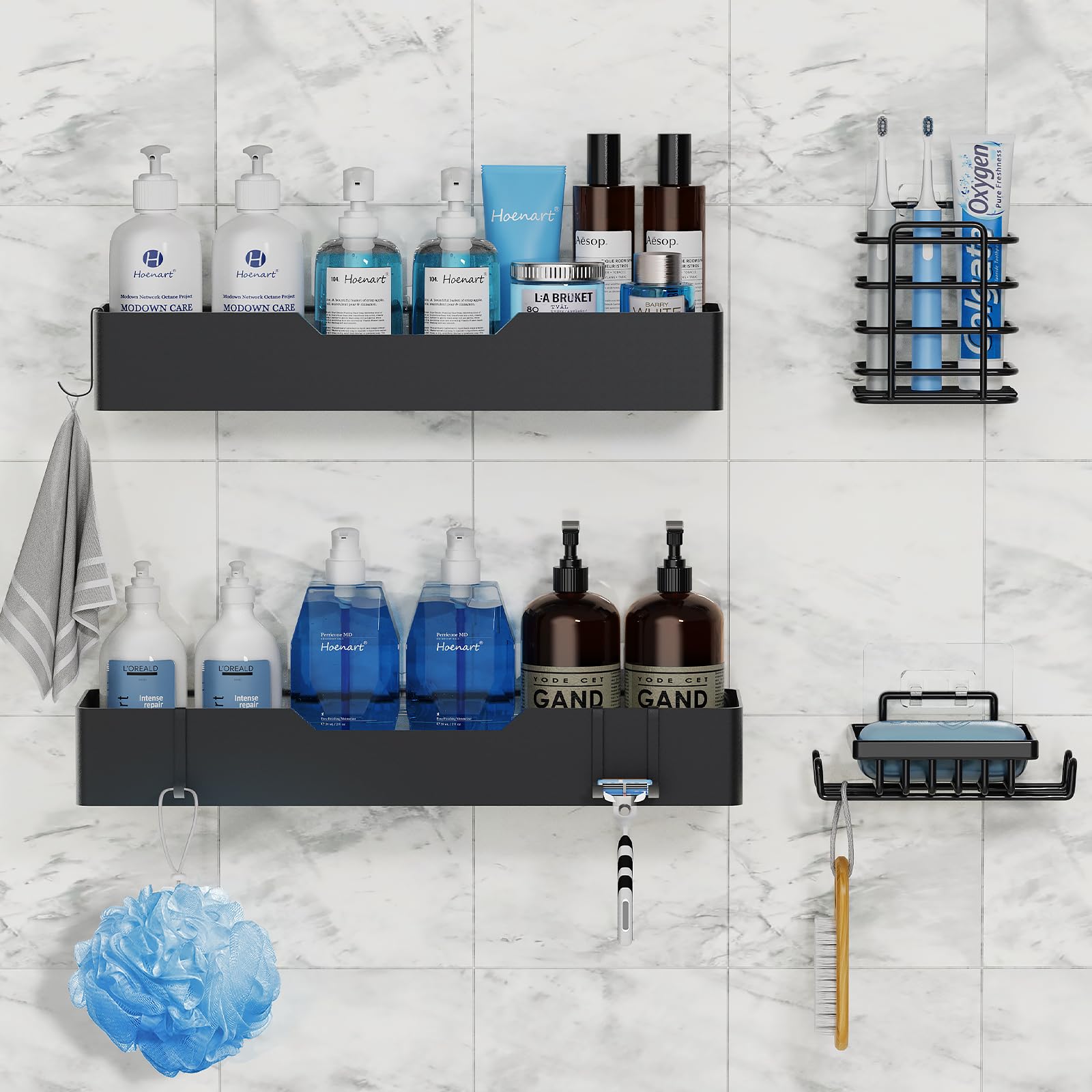 Hoenart Large Shower Caddy, 4 Pack Adhesive Shower Caddy Shelf, Bathroom Shower Organizer, Shower Shelves for Inside Shower, Drill-Free, Quick-Dry, Rustproof Stainless Steel Shower Storage (Black)