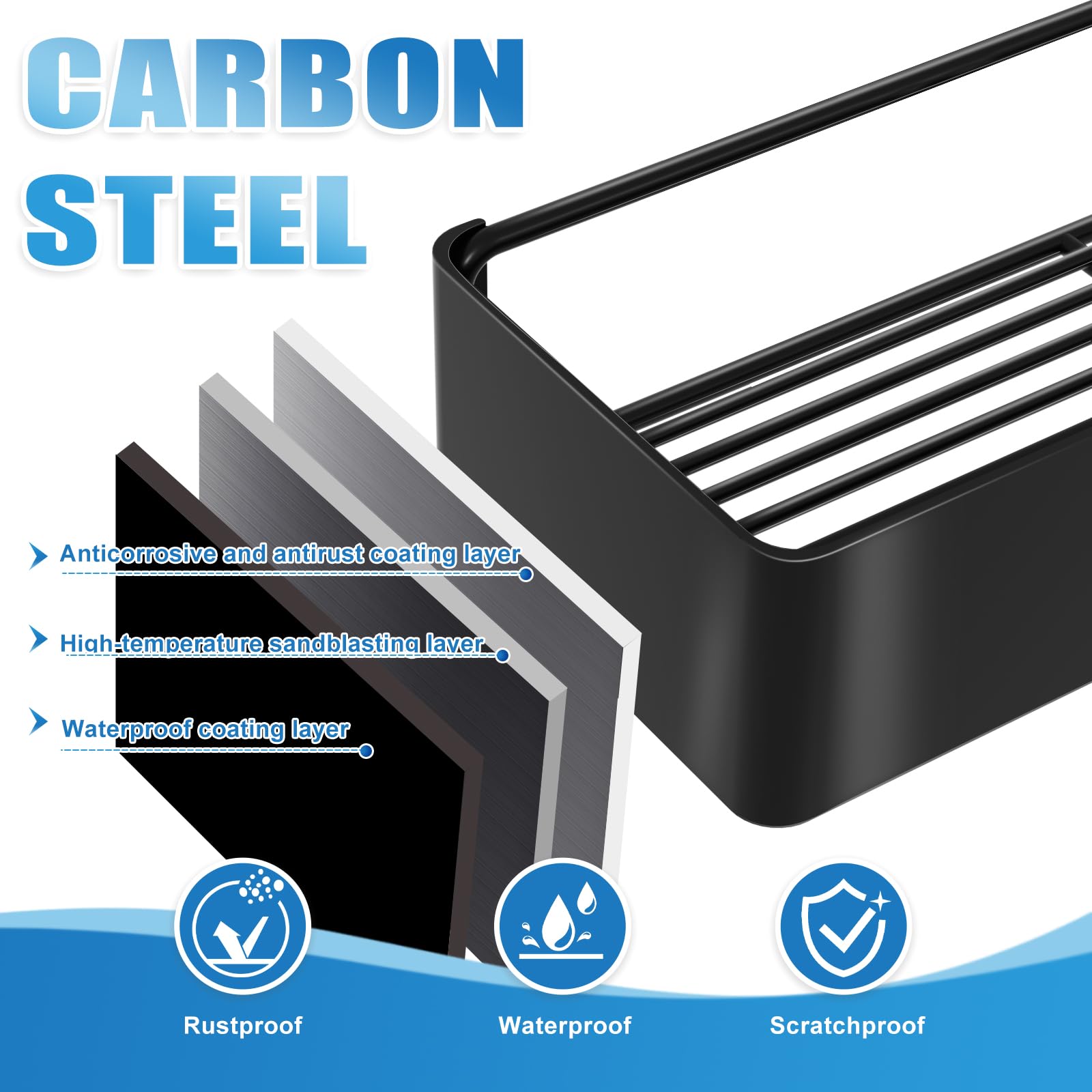 - 💦『Premium Stainless Steel Material』The shower shelves are made of stainless steel. Each shower shelf is rustproof, waterproof, and scratchproof. Using the high-temperature baking paint process, the thickened black coating while further enhancing the anti-rust ability, makes the surface smoother and prevents moisture residue allowing avoid being corroded in a humid environment. The metal frame is sturdy, and not easily deformed. The hollow grid design can drain the water quickly.