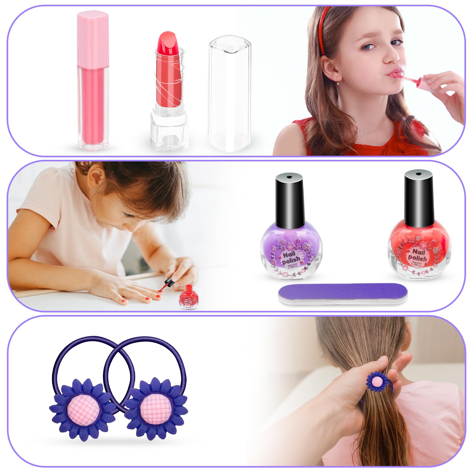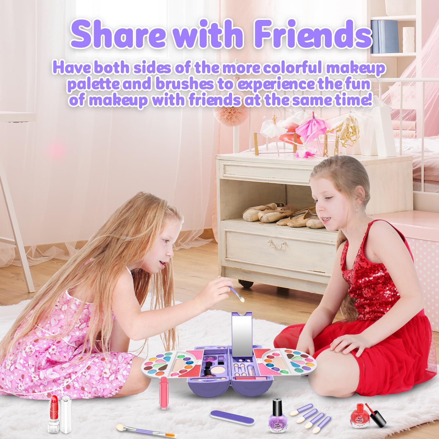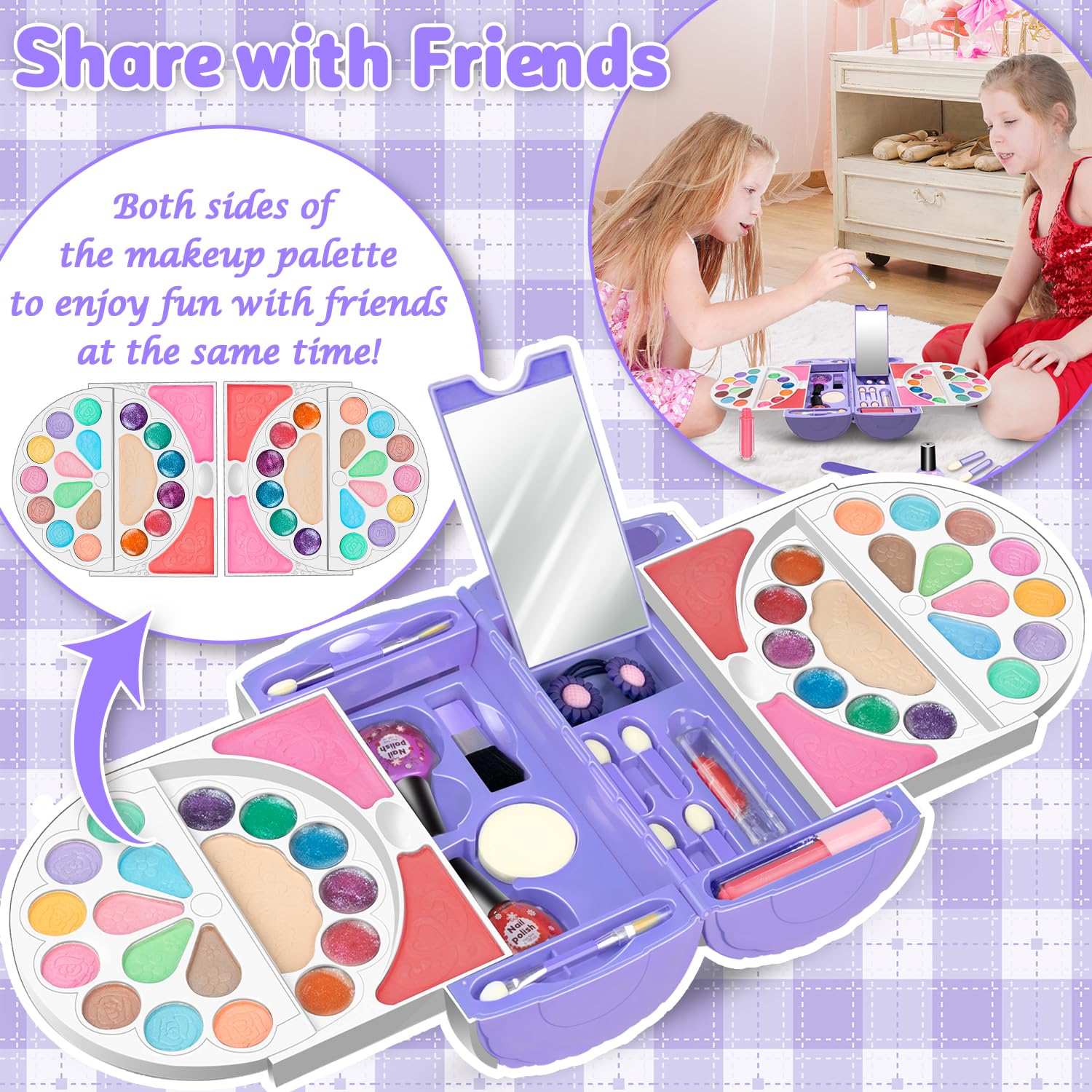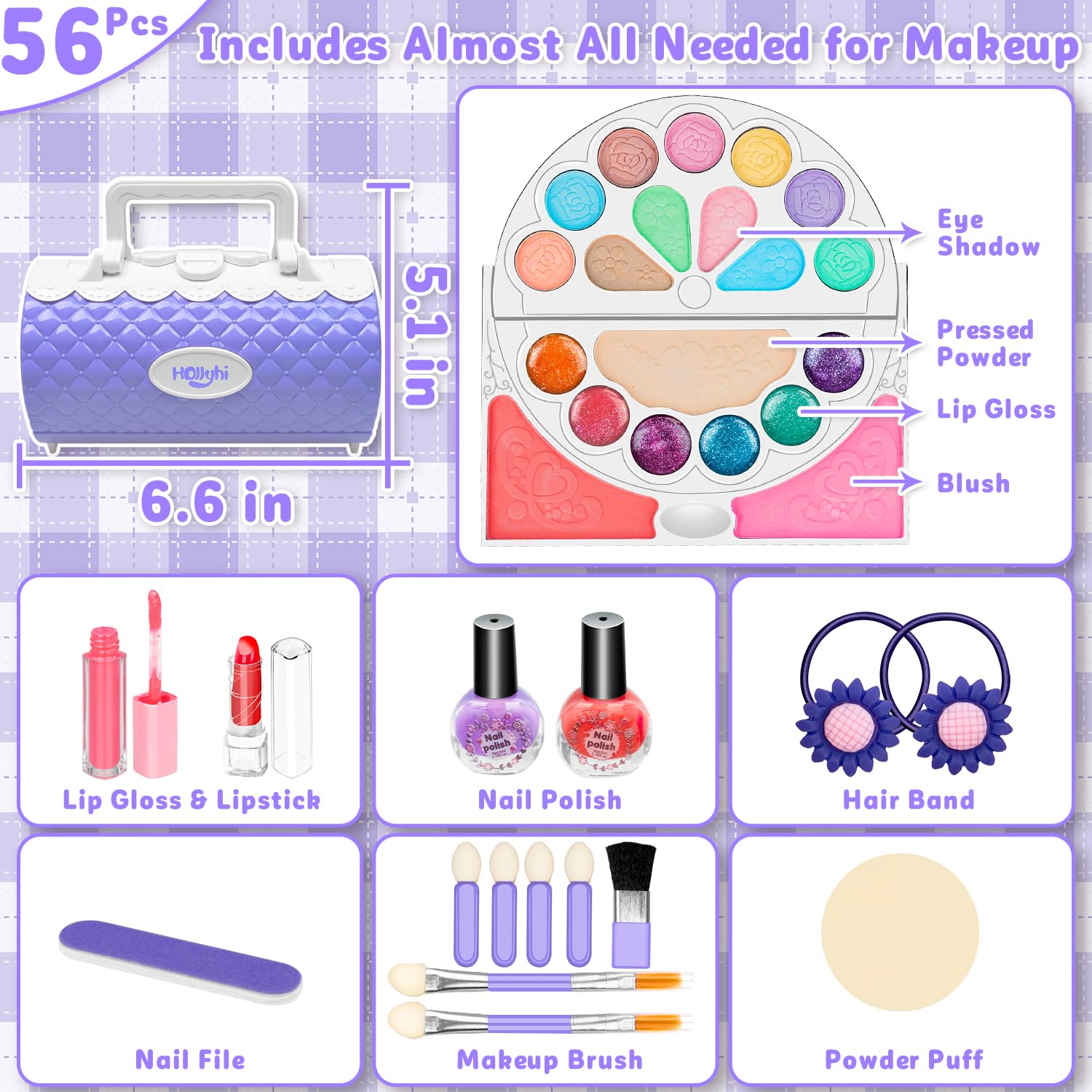Hollyhi 56Pcs Kids Makeup Kit for Girl, Washable Real Play Makeup Toy Set with Cosmetic Case for Girl Toys, Toddler Make up Toys Birthday Gifts for Kids Age 3 4 5 6 7 8 9 10 11 12 Years Old (Purple)