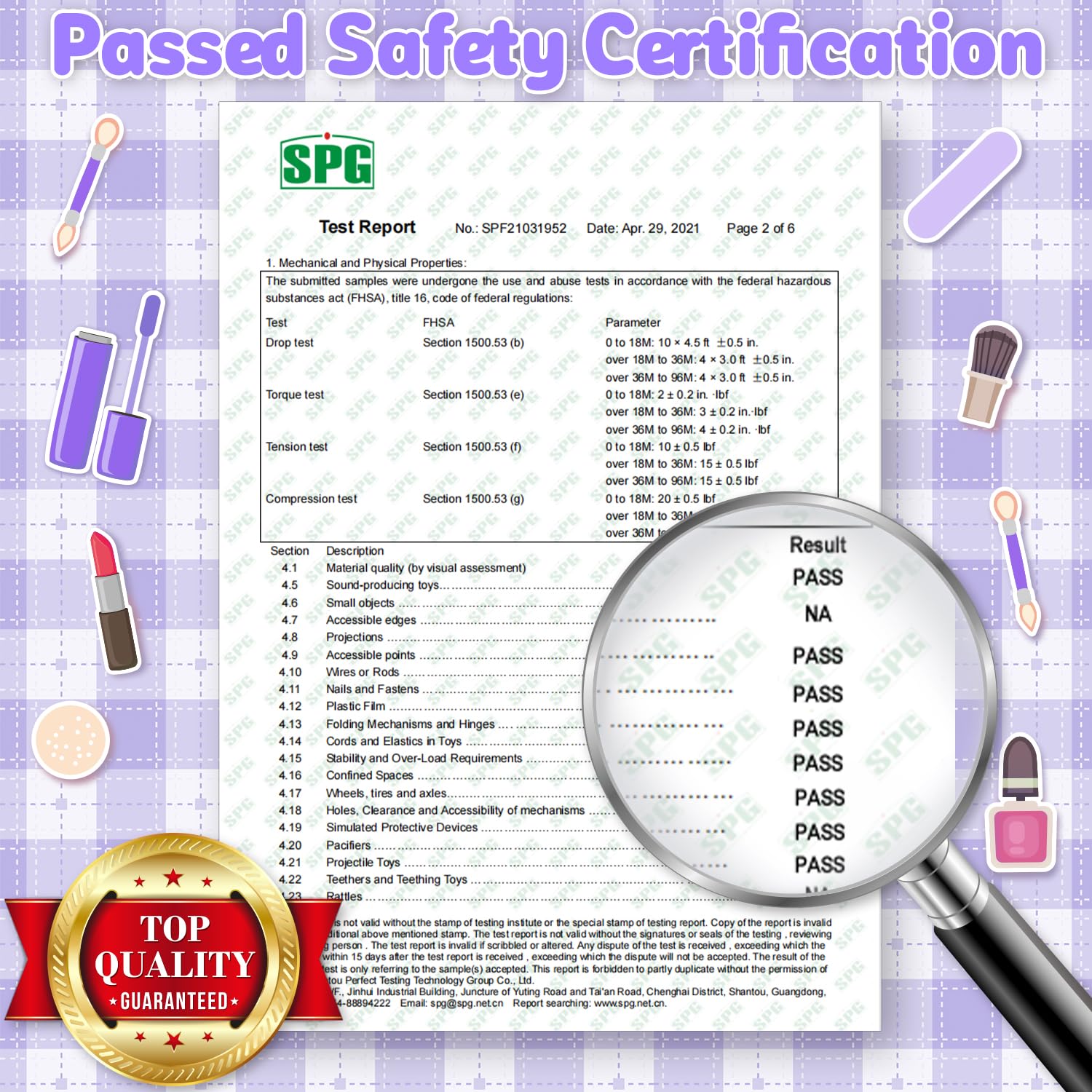 - 【Material Safety Play Makeup Toys】: The safety of children is the primary consideration, so our kid's makeup kit has passed safety tests and meet the standards of international children’s toys(CPC, ASTM, CPSIA certificates). All cosmetics are made of high-quality and mild materials that are not irritating to kid’s skin and can be used with confidence. Trust this colorful and fully functional make up toys set provides girls with hours of safe beauty experience.