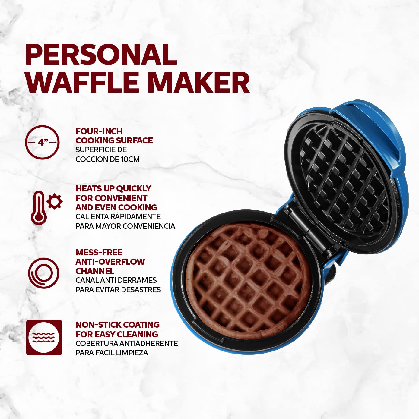 Holstein Housewares Personal Non-Stick Waffle Maker, Blue - 4-inch Waffles in Minutes
