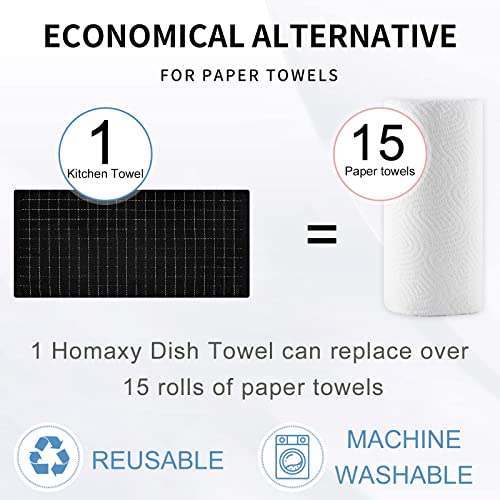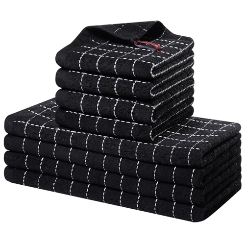 Homaxy Kitchen Towels and Dishcloths Set, 12 x 12 and 13 x 28 Inches, Set of 8 Bulk Cotton Terry Kitchen Towels Set, Checkered Designed, Soft and Super Absorbent Dish Towels, Black