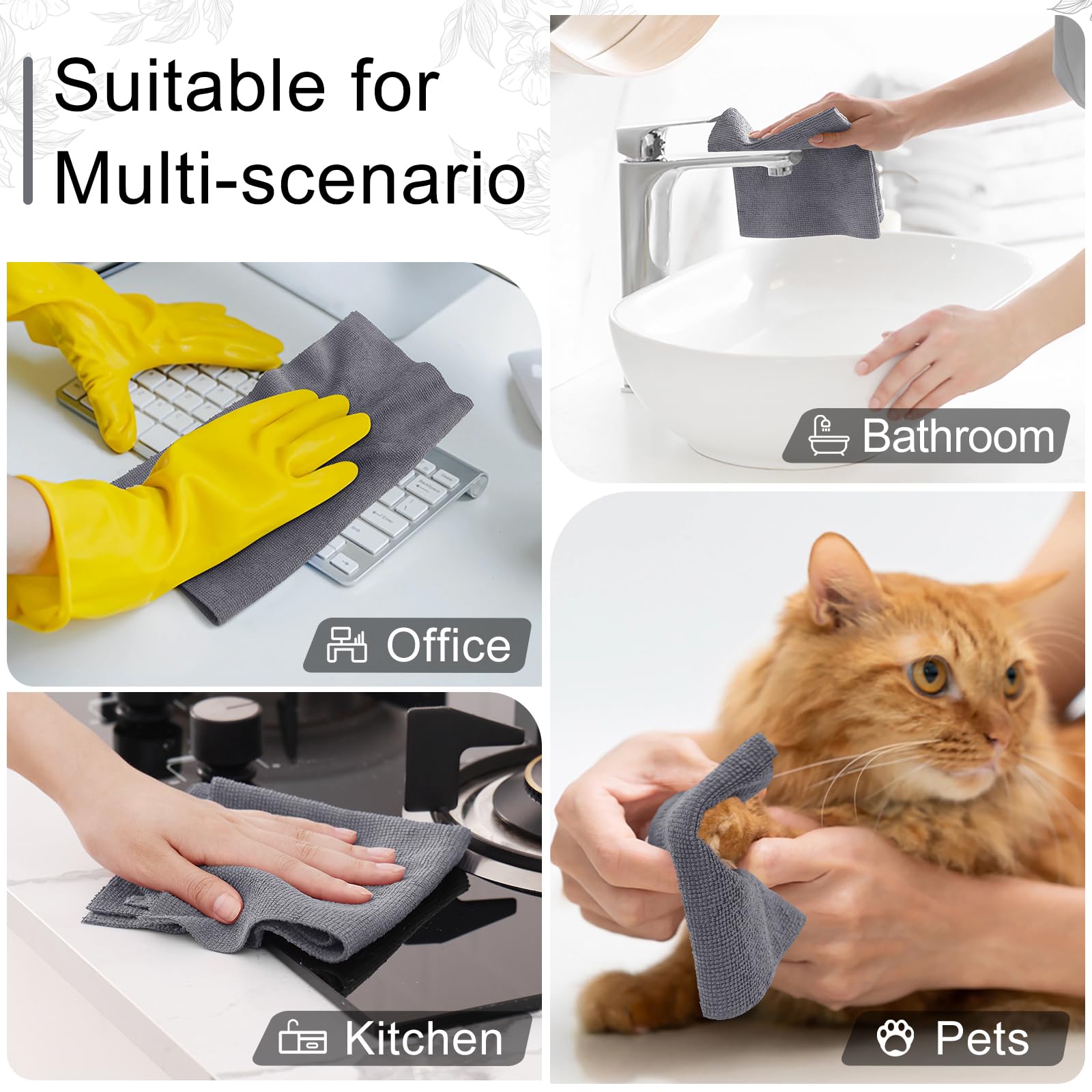 - MULTI-PURPOSE: Each microfiber towel measures 11.8 x 11.8 inches and is suitable for a variety of cleaning tasks, not only for kitchens, cars, and workshops, but also for cleaning electronics, glass, screens, and more. Versatile and a must-have for homes, bars, restaurants, bedrooms, kitchens, bathrooms and garages