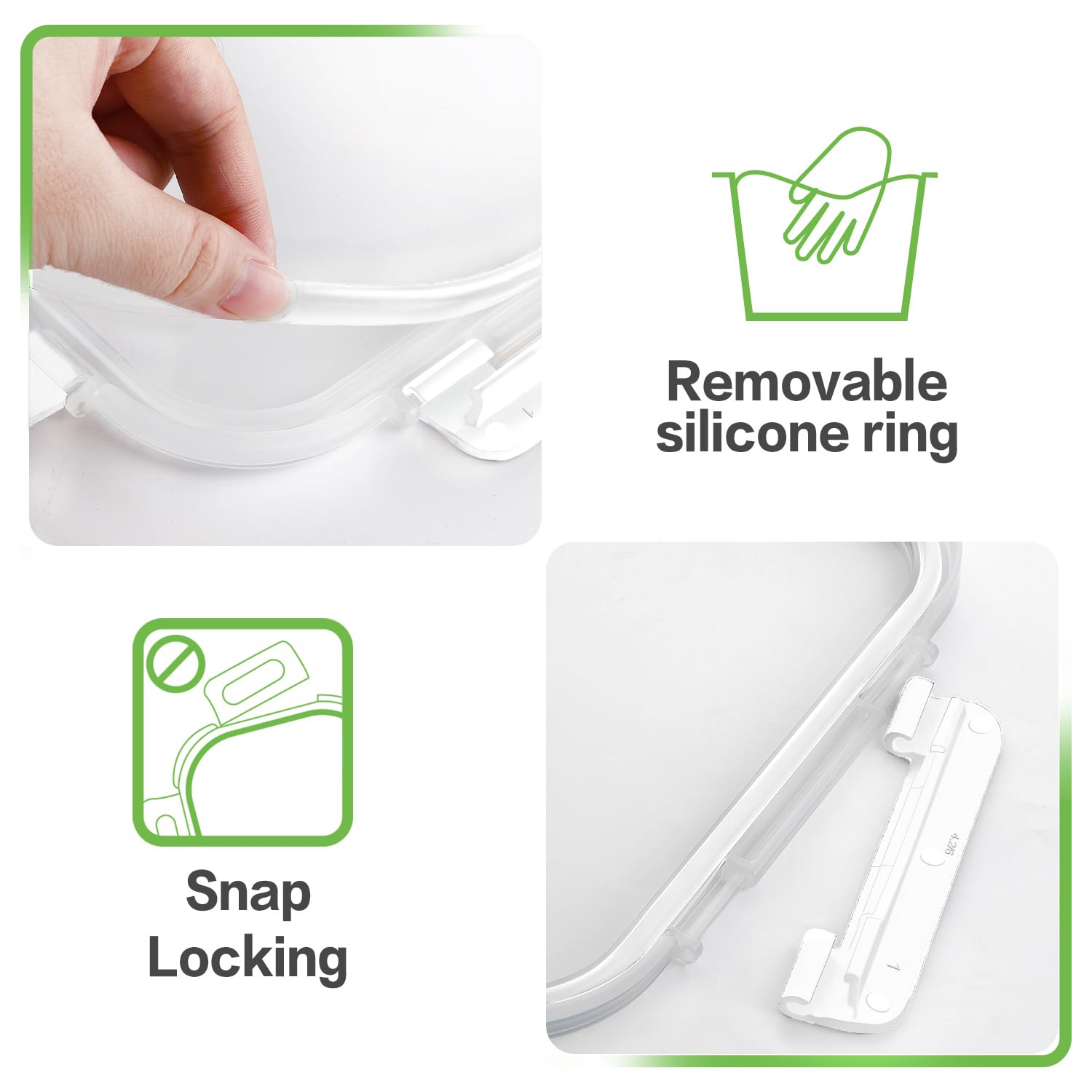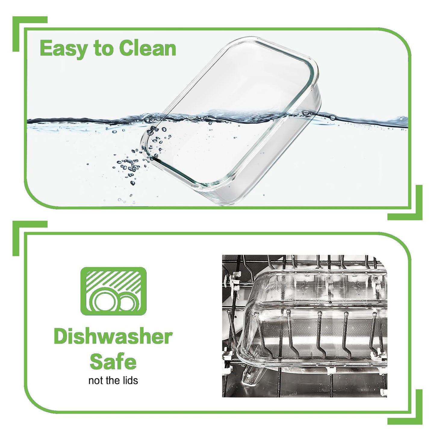 - [BPA Free & Easy to Clean] BPA-Free plastic locking lid is safe as well as leakproof. Crystal clear borosilicate glass is easy to clean without absorbing stains or smells. They are dishwasher safe to instead of hand washing. Also the silicone seal is removable for your to clean and dry it. In order to prevent seal sticking to the containers, please must wash the lids and containers before put them away.