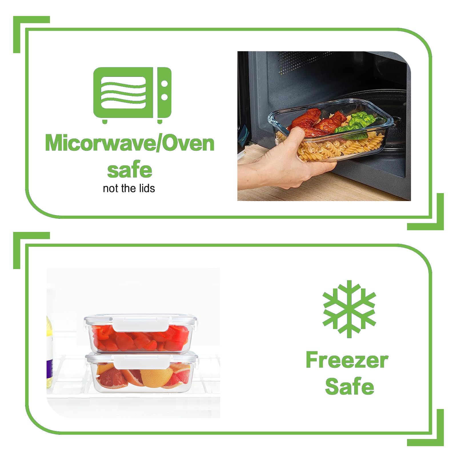 - [Microwave/Oven & Freezer Safe] Our containers can withstand temperatures from -4℉ to 752℉, you can use them in oven/microwave(Not the lids) and freezer storage. High quality borosilicate glass is more durable, allowing you to use the containers within the permitted temperature range without worrying about the box breaking. Please not put the lids in microwave/oven to avoid deformation of the lid and silicone strip.